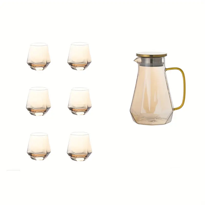 1 Set,  Kettle With Six Cups Set, High Borosilicate Glass Diamond Pot, Household Cold Water Pot, High-Temperature Resistant Juice Pot, Tea Pot, Large Water Pot, Anti Damage Packaging, Home Supplies