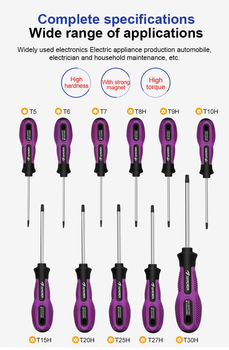 ● Torx/star screwdrivers set included (T5,T6,T7, T8,T9,T10,T5,T20,T25,T27,T30), that are designed to serve for domestic appliance, automobil,mountain bik, Harley motorcycle, DeWalt chainsaws, headlight , they are capable of meeting your various needs.