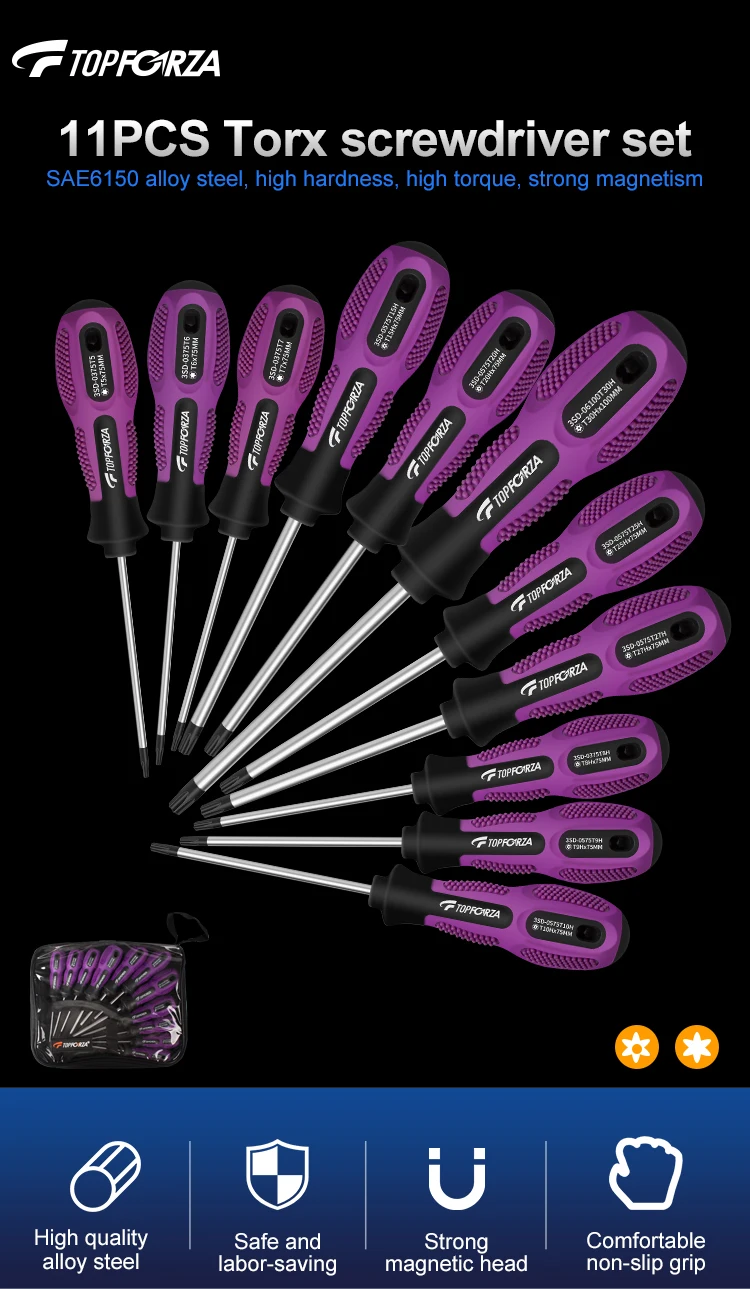 TOPFORZA 11-Piece Magnetic Torx Screwdrivers Set, Magnetic Torx Driver Star Screwdrivers Set T5 - T30