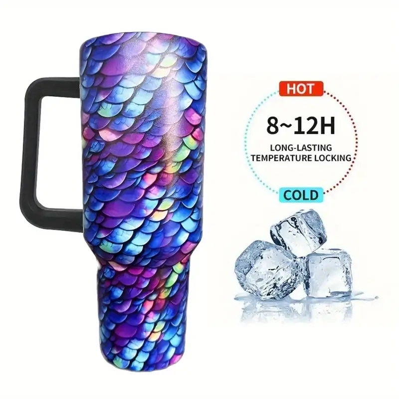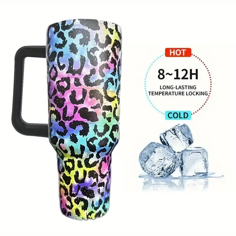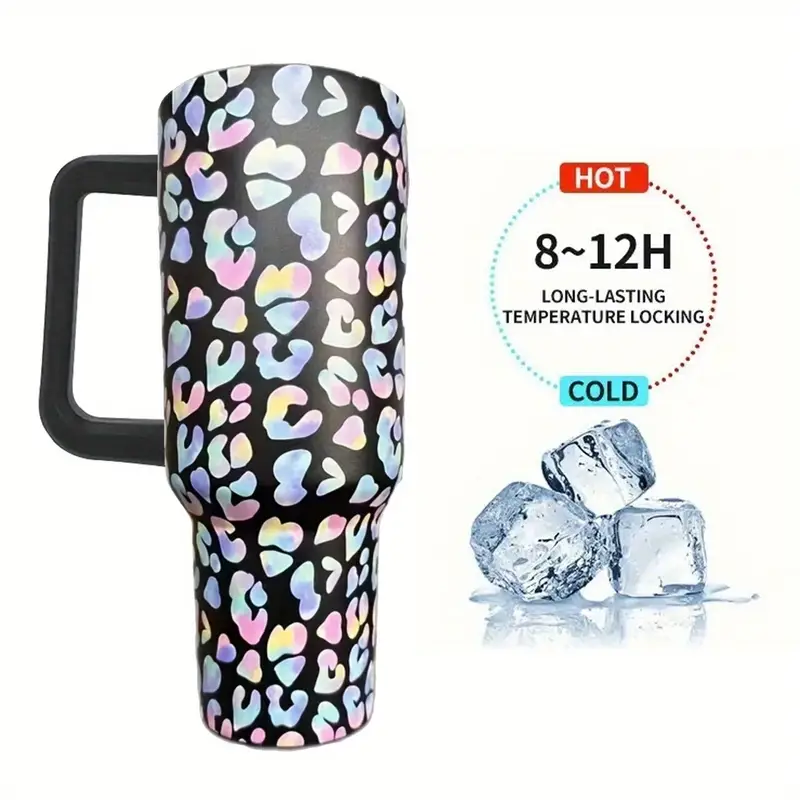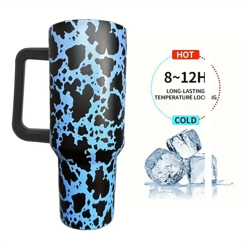 1pc, 40OZ Large Capacity Stainless Steel Water Bottle With Handle And Straw Lid, Portable Tumbler For Home And Travel Milk Drinking Straw Thermal Mug, Flask Heat Preservation Mug Cup With Handle, Tea Coffee Cup