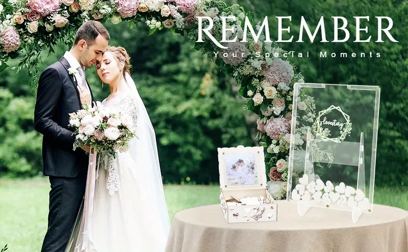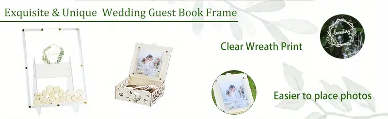 ◆ KEEP YOUR WONDERFUL MOMENT - The exquisite guest book alternatives can be put upright on the assembled wooden frame stand and placed on the reception table. We provide a plywood box to place blank wooden hearts, your guests leave their names or wish on the wooden hearts and drop them inside the wedding guest book frames to record visiting guests