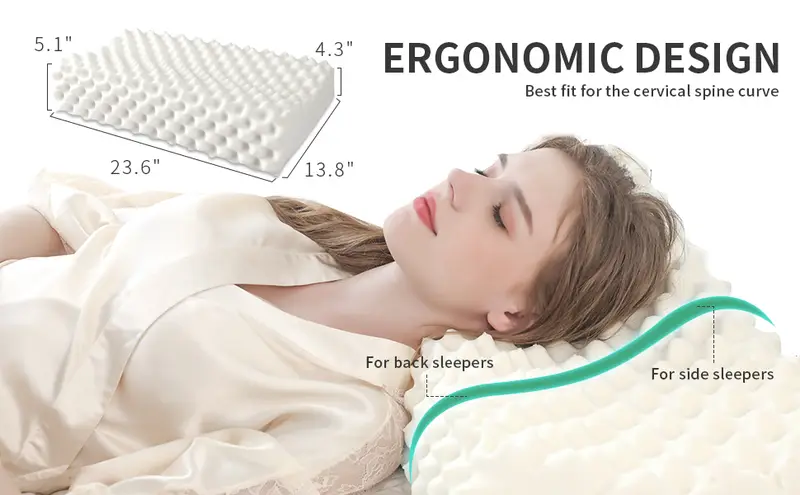1pc Relieve Pain and Sleep Better with Natural Latex Pillow - Adjustable for Side, Back, and Stomach Sleepers - Mesh Inner Cover and Removable Pillowcase Included