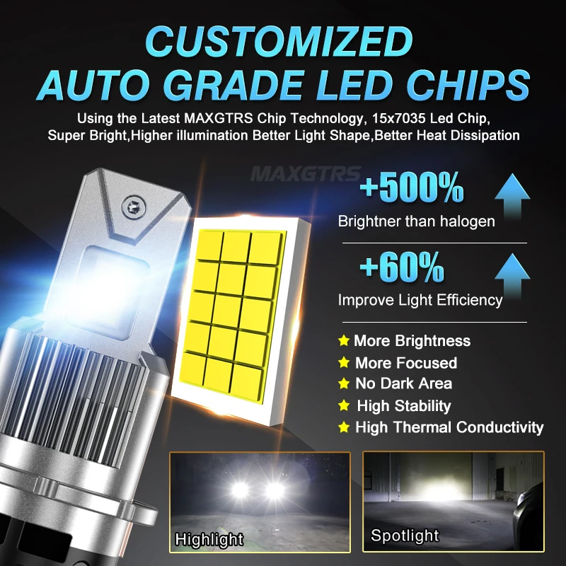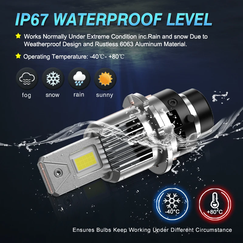Brightness:+500% brighter than original HID xenon bulb,up to 4500lm