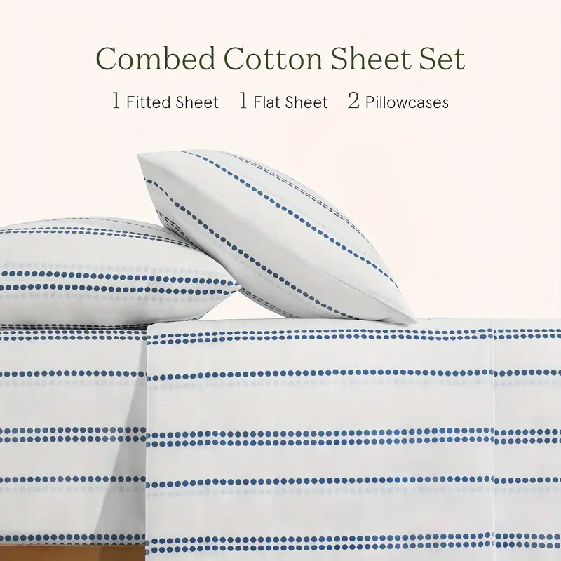 3/4 Pcs Luxury Striped Fitted Sheet Set, 100% Cotton Fitted Sheets With 15" Deep Pocket, Extra Soft, Breathable Mattress Cover For Bedroom, Guest Room (1*Flat Sheet + 1* Fitted Sheet + 1/2*Pillowcases, Without Core)