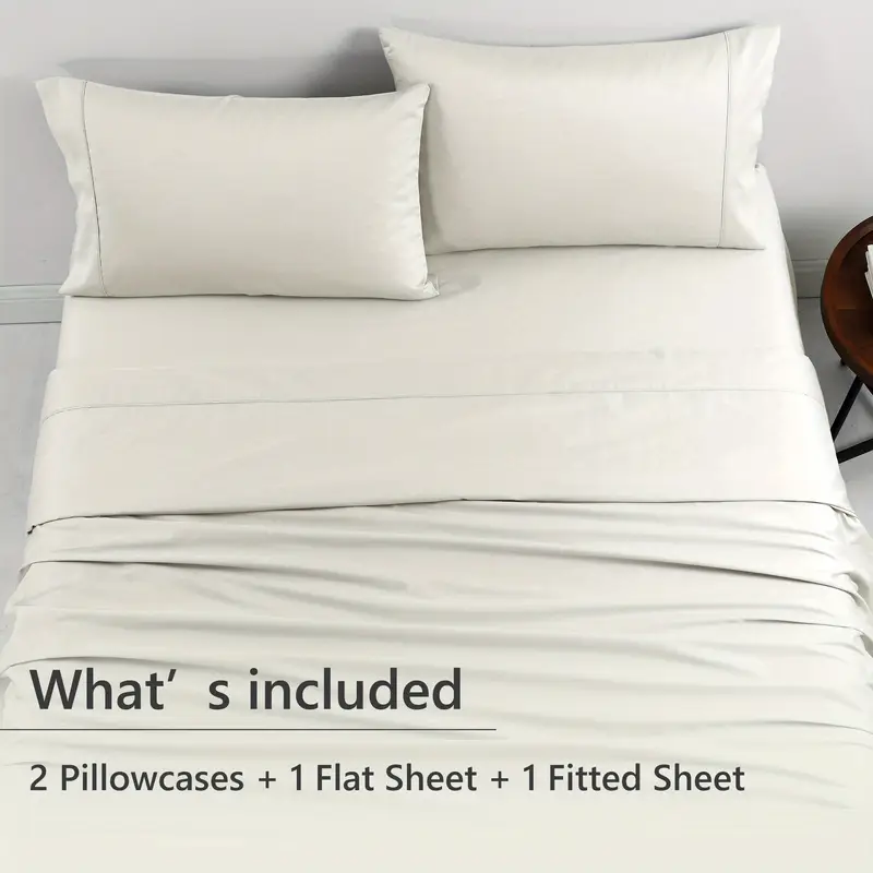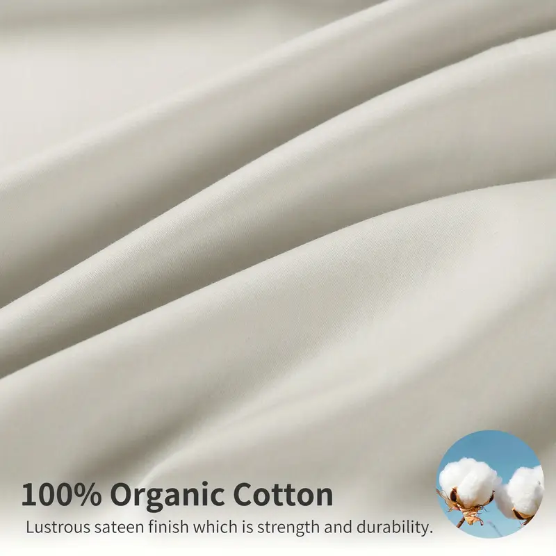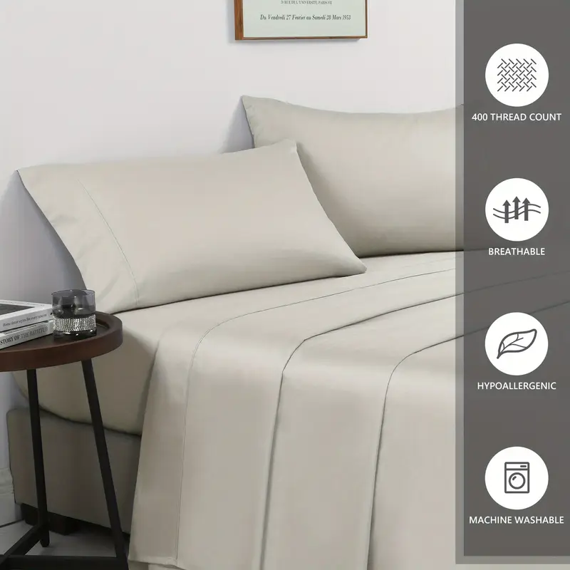3/4pcs 100% Cotton Fitted Sheet Set, 400 Thread Count Sateen, Soft Comfortable Breathable Bedding Set, For Bedroom, Guest Room, Deep Pocket Bed Sheets (1*Flat Sheet + 1* Fitted Sheet + 1/2*Pillowcases, Without Core)