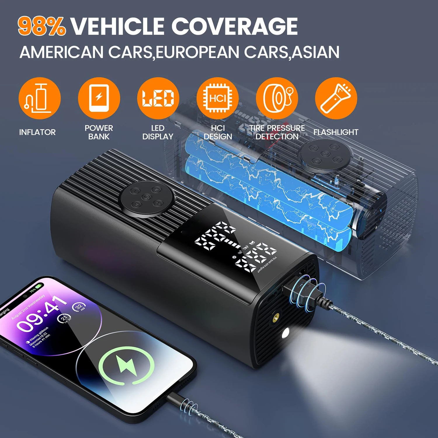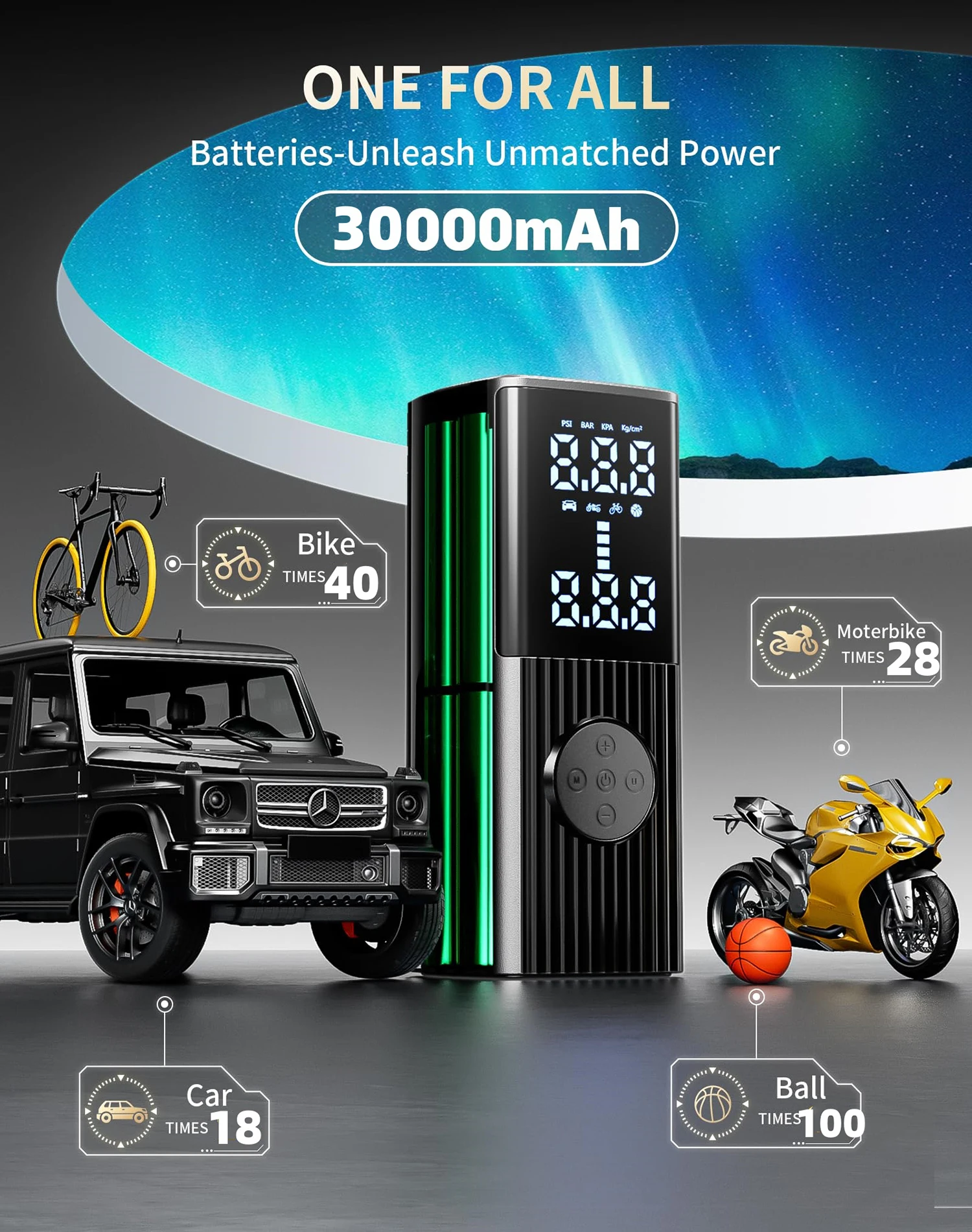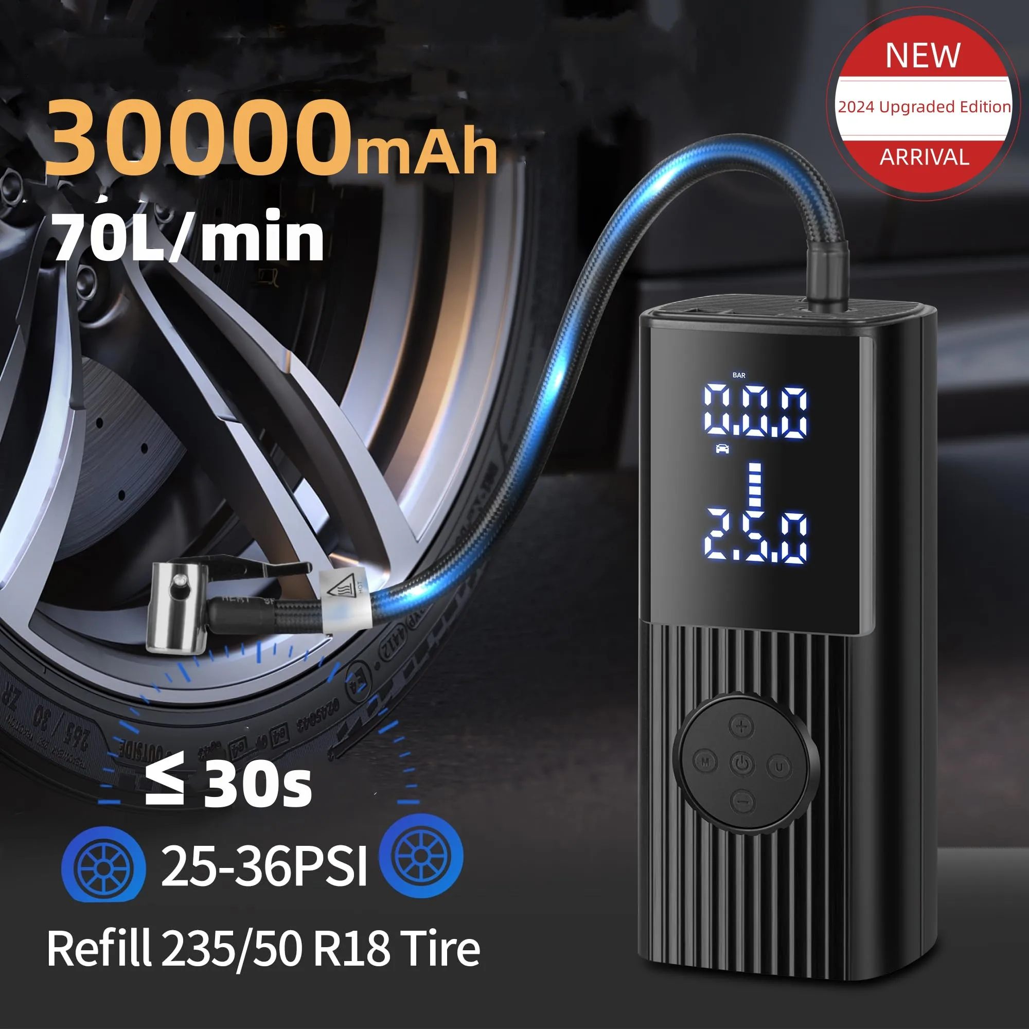 30000mAh Battery Car tire inflator,60L/min Bicycle air injector,portable digital compressor,motorcycle compressor,Electric infla