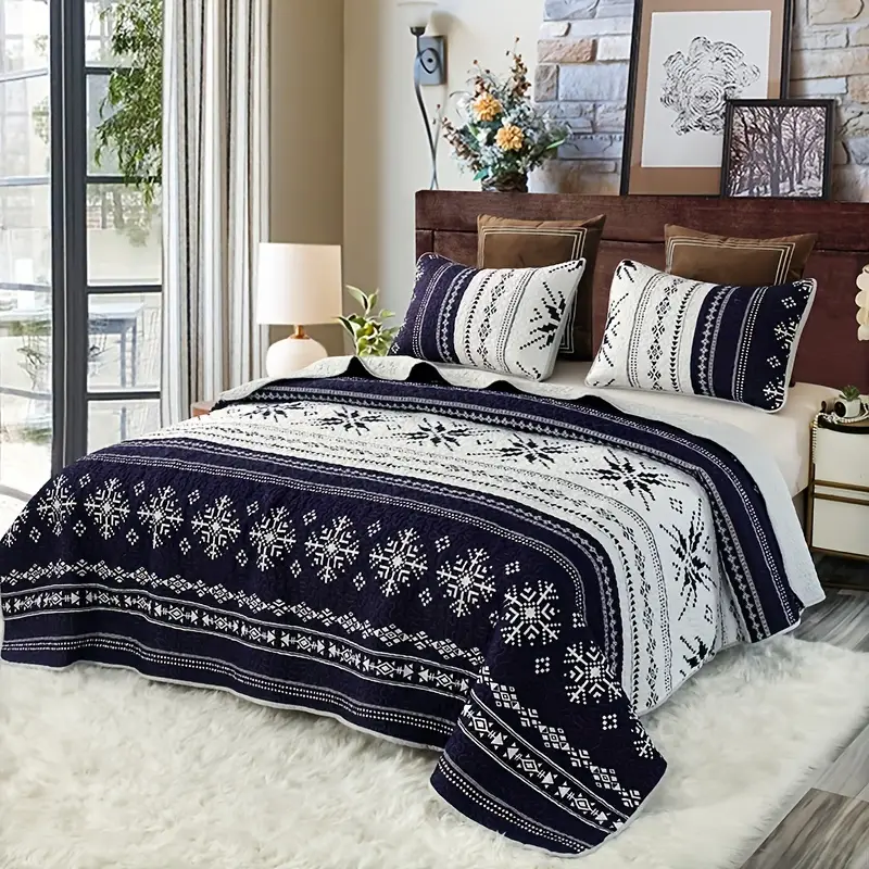 3pcs Boho Flower Pattern Brushed Quilted Bedspread Set (1*Bedspread + 2*Pillowcase Without Filler), Soft Breathable And Comfortable Bedding Set For Bedroom Dorm Room Decor