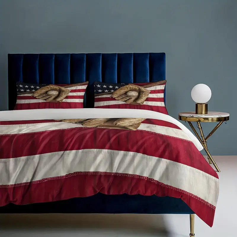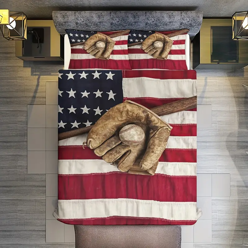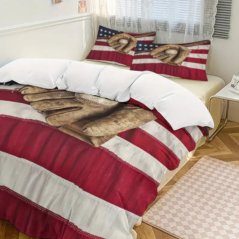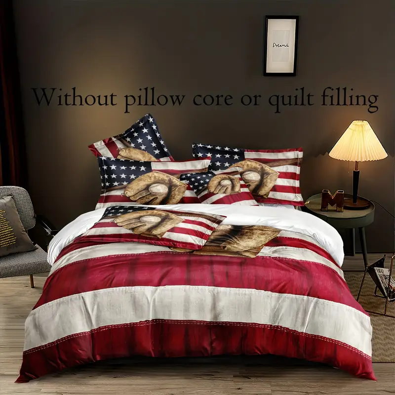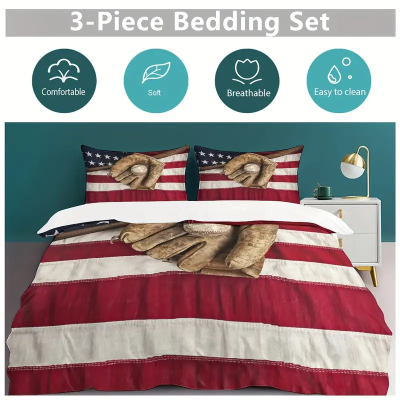 3pcs Duvet Cover Set, Flag Baseball Print Bedding Set, Soft Comfortable Duvet Cover, For Bedroom, Guest Room (1*Duvet Cover + 2*Pillowcases, Without Core)