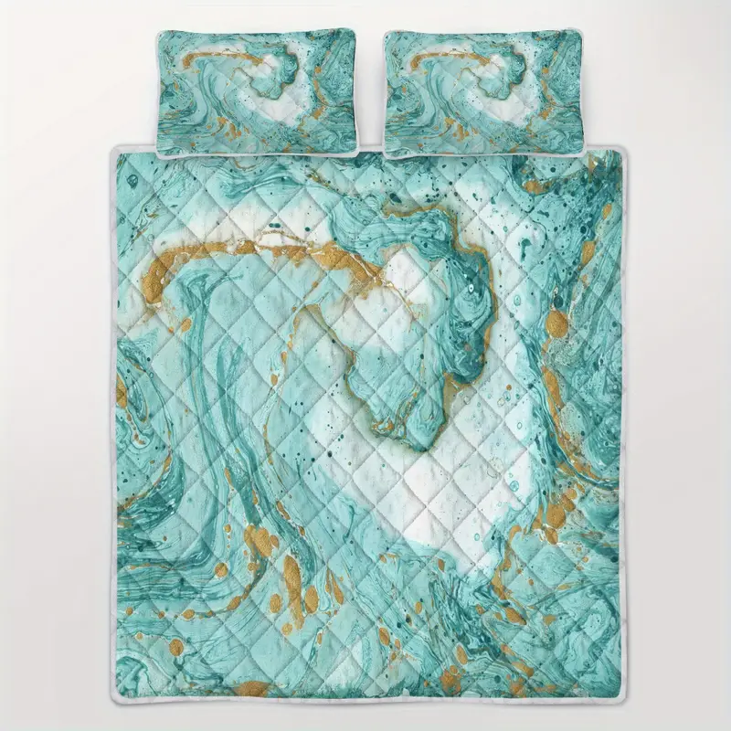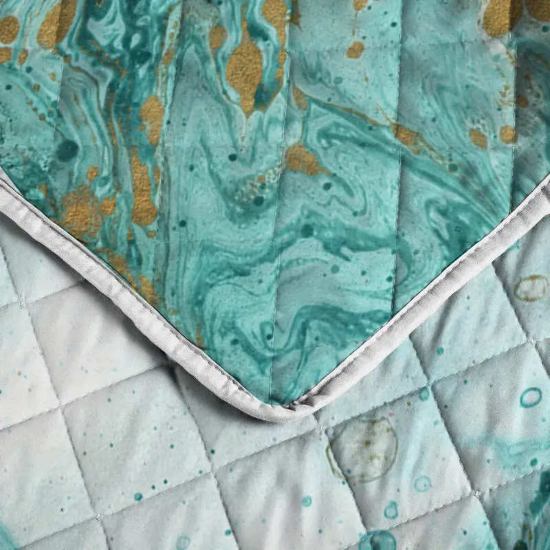 Colorful And Vibrant- Our Marbling Printed with golden and turquoise flowing design quilt set is designed to be just as charming as they are comfortable. This cute Marbling Printed quilt stuff uses an elegent and trendy and eye-catching design that will help create a welcoming, comforting and uplifting space to rest and unwind.