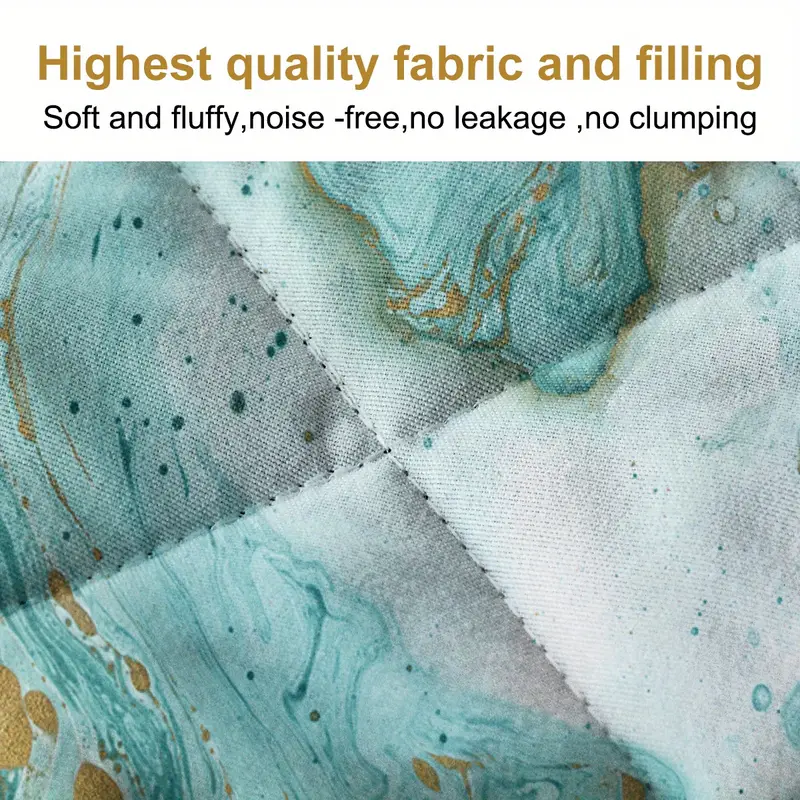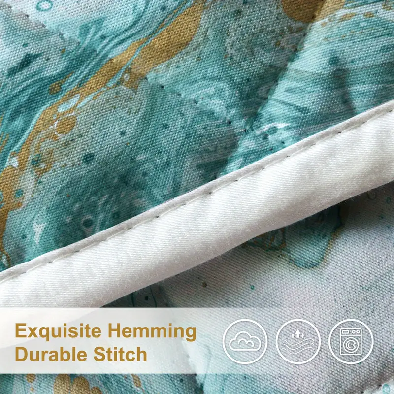 CLOTH: The material of our Marbling Printed with golden and turquoise flowing design quilt set is gentle and breathable, suitable for years- spherical use. This quilt is soft and lightweight, not too heavy to strain you.