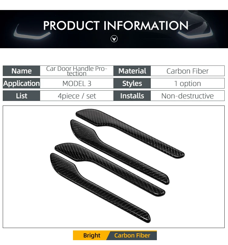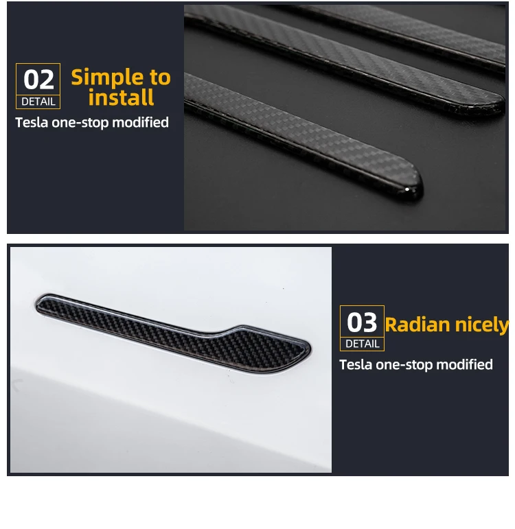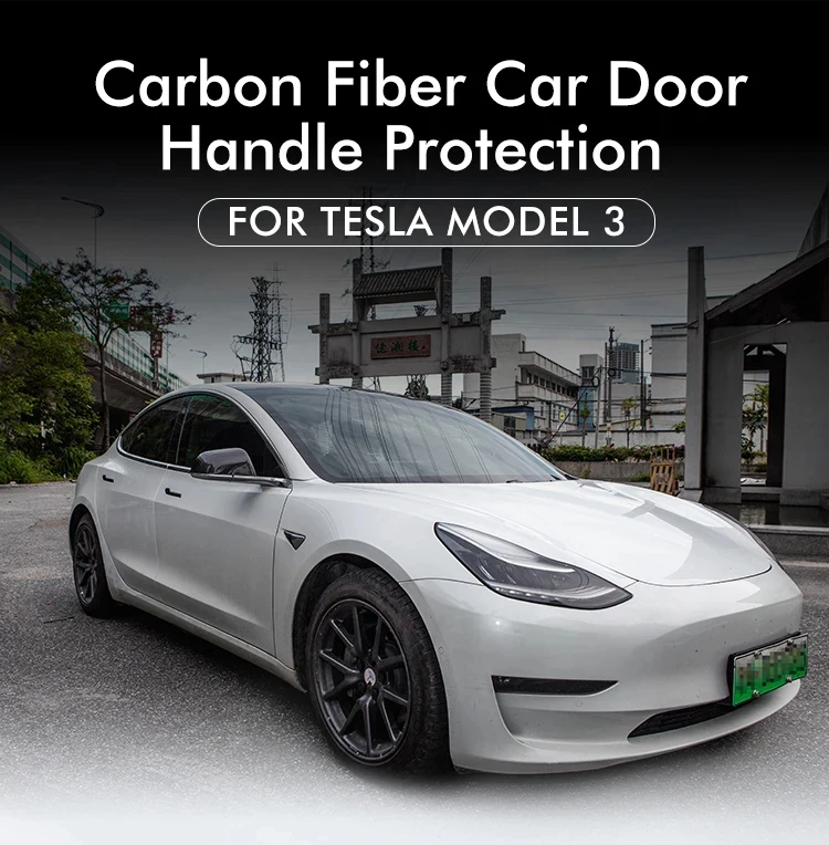 4pcs 2023 Car Door Handle Sticker For Tesla Model 3 Y 2017-2022 Door Cover Paste Model3 Model Y Accessories Real Carbon Fiber