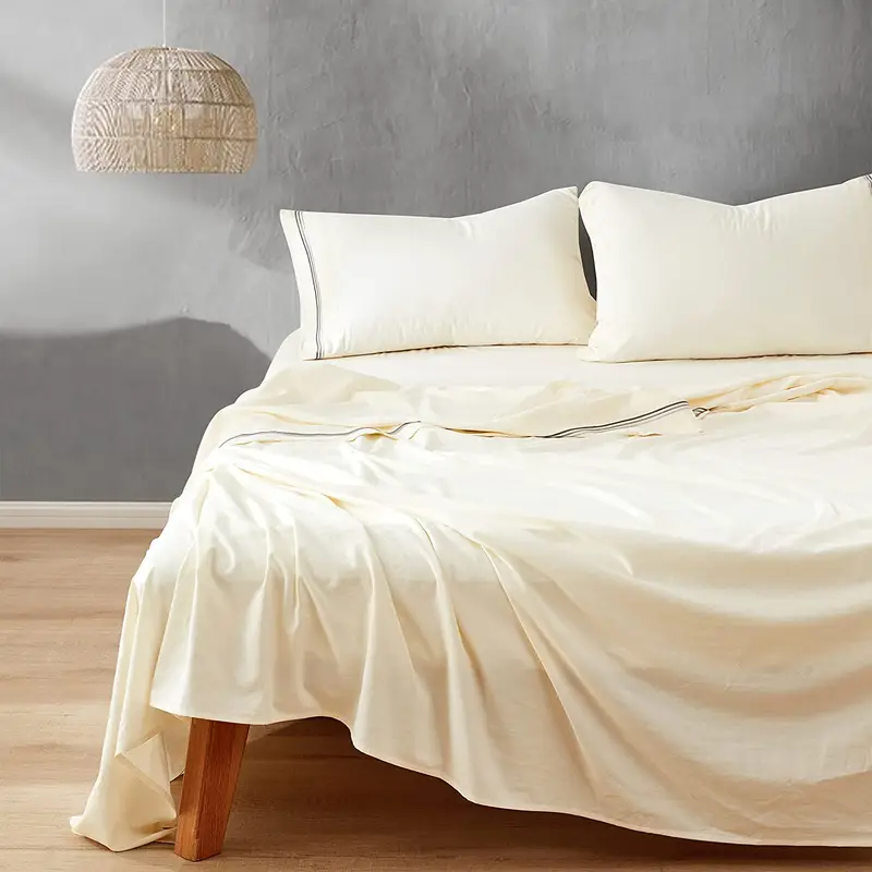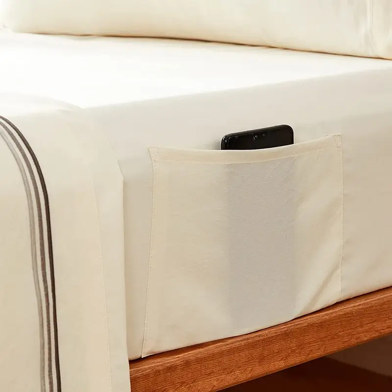 Packed: 1 x Flat Sheet; 1 x Fitted Sheet; 2 x Pillow Cases; 1 x Storage Bag Size