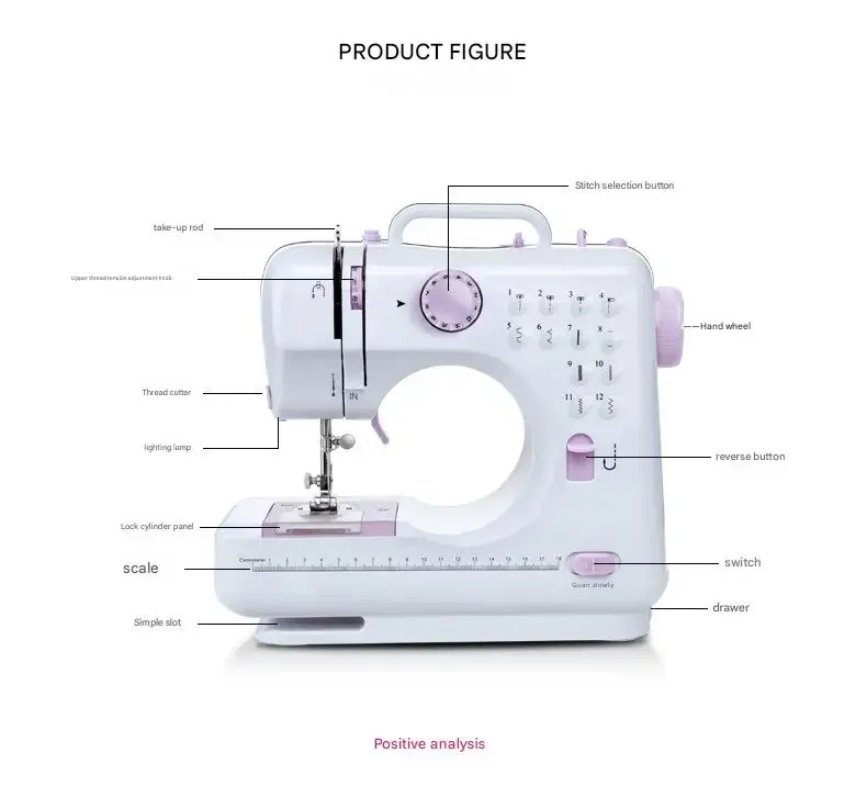 505 medium-sized portable sewing machine, electric desktop sewing machine, multi-functional lock-stitch sewing tool