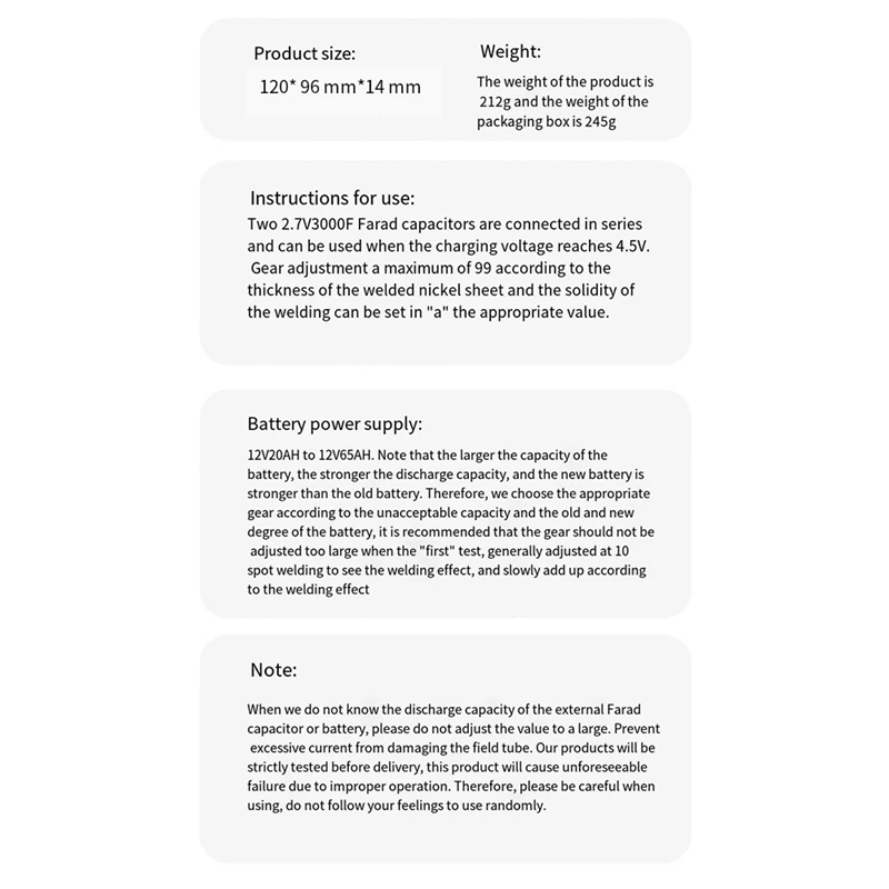 Thickness of welded nickel sheet: 0.1-0.3mm(related to battery discharge energy)