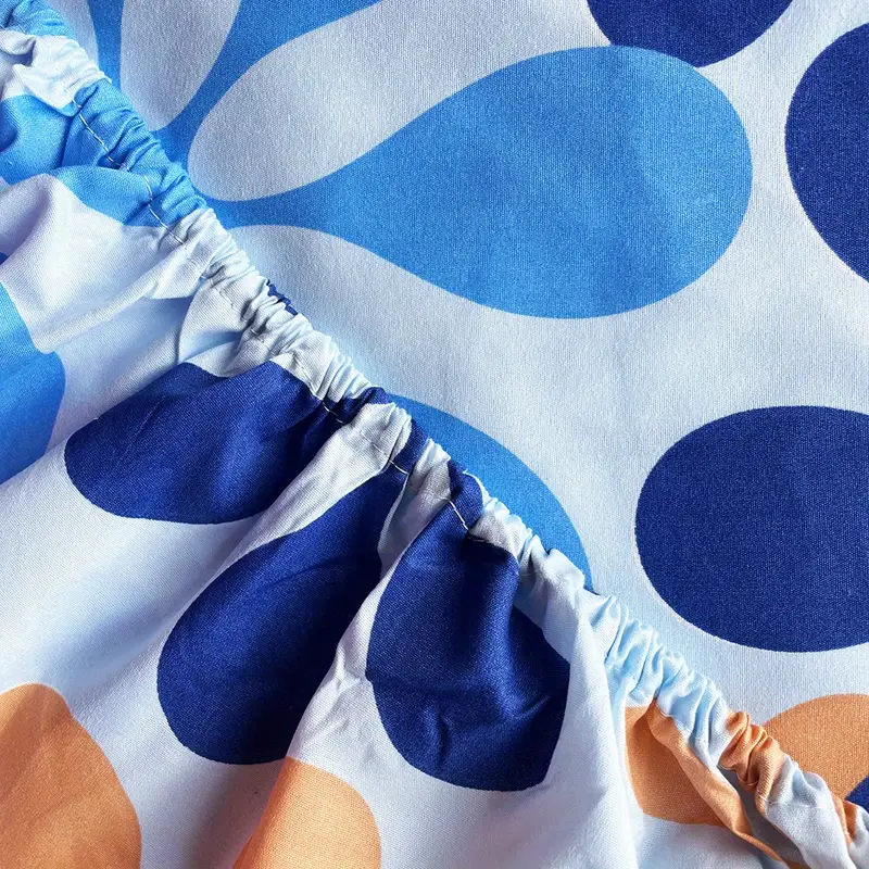 1 Printed Flat sheet, 1 Printed Fitted sheet, 2 Printed Pillowcases, and 2 Solid Pillowcases