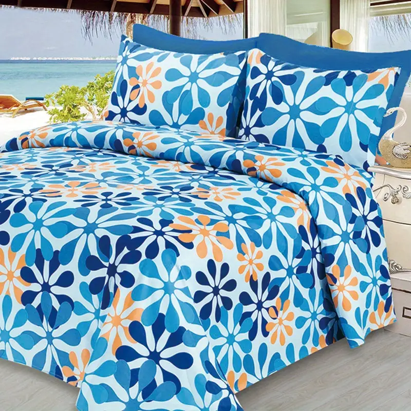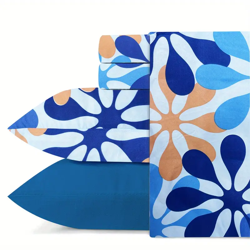 6 Pieces Printed Sheet Set With 2 Print Pillowcases And 2 Solid Pillowcases - Blue Floral