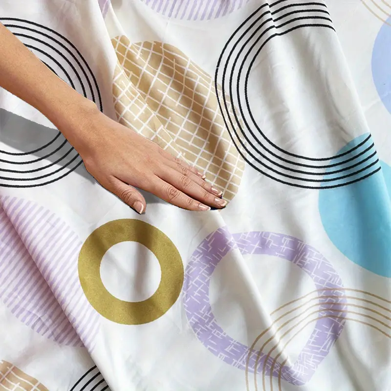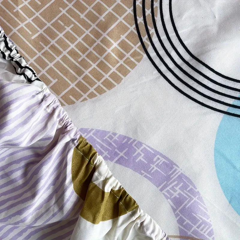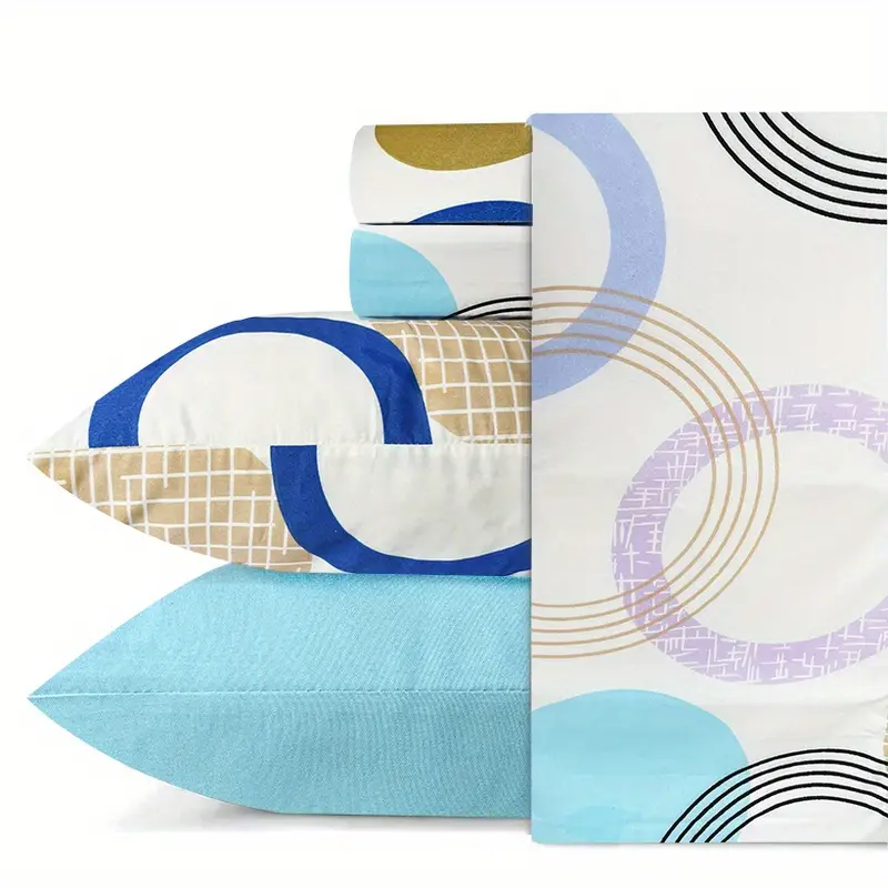 1 Printed Flat sheet, 1 Printed Fitted sheet, 2 Printed Pillowcases, and 2 Solid Pillowcases