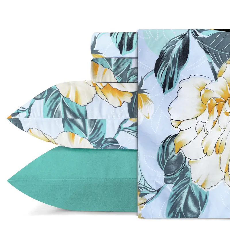 6 Pieces Printed Sheet Set With 2 Print Pillowcases And 2 Solid Pillowcases - Yellow Floral
