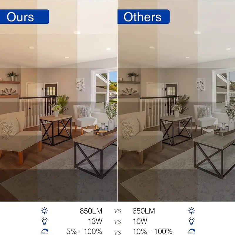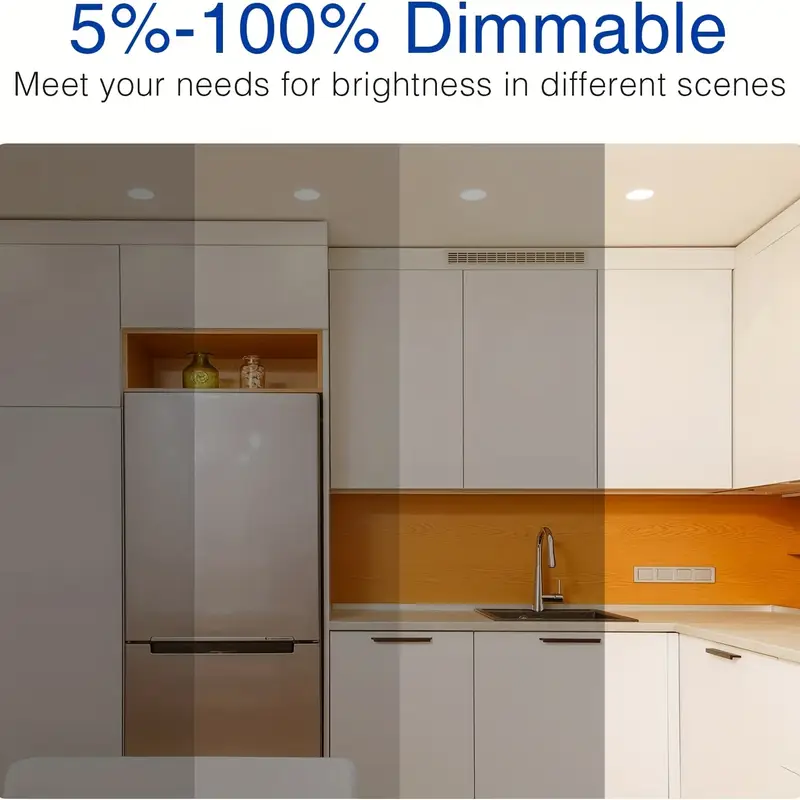 【SUPER SMOOTH DIMMING FUNCTION】 5% - 100% smooth dimming capability allows you to customize your ambiance in every room. No Flickering and eye protection. Compatible with most dimmers, especially main trend dimmer-Lutron, and Levitron in the market.