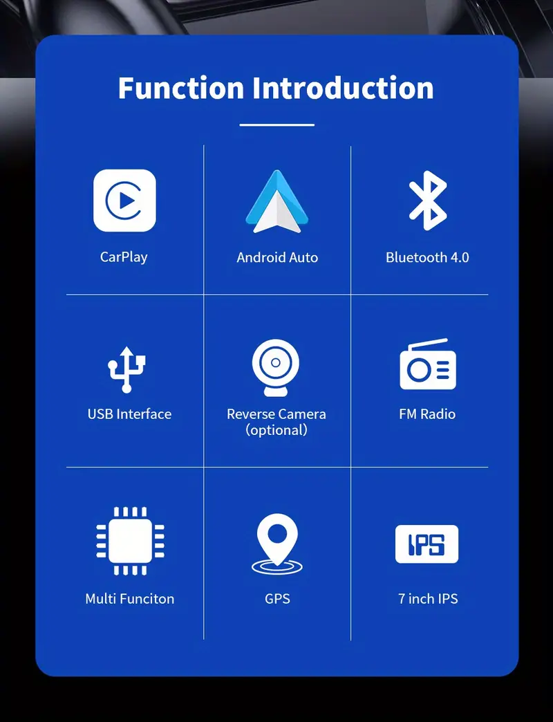 [wireless Apple CarPlay ] Support wireless Apple CarPlay function, can connect to the host through mobile phone Bluetooth and WiFi and use iPhone CarPlay function. You can view navigation, listen to songs, etc. t