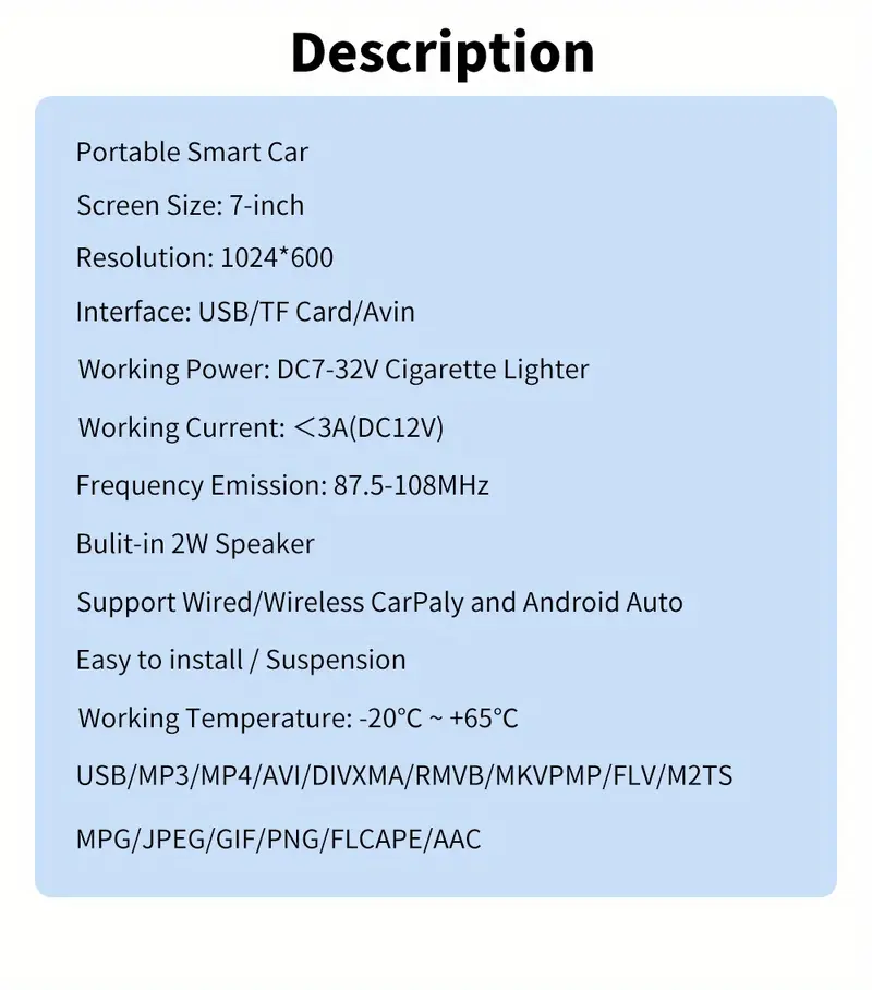 7inch Car Monitor Wireless Apply Carplay Android Auto Car Multimedia Video Player Touch Screen Support Rear Camera FM AUX