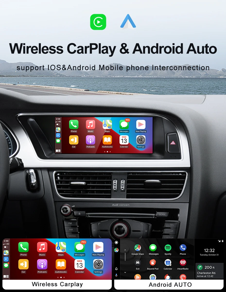 8.8" 8Core Android13 Wireless AUTO CarPlay For AUDI A5 09-16 Automobile Intelligence System Car Multimedia Screen GPS Navigation