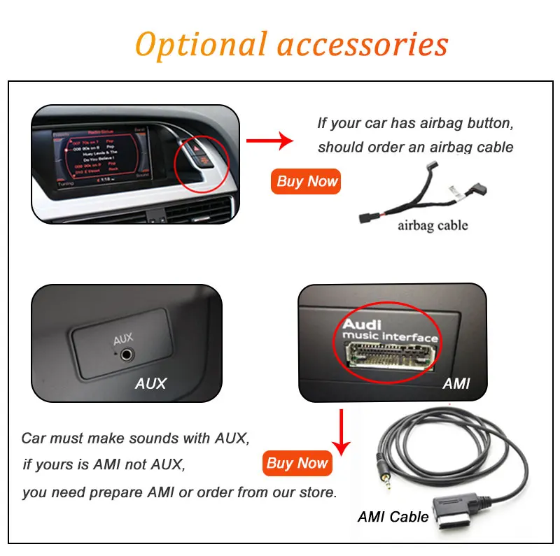 If you need to purchase AMI cables and Airbag cables, please contact customer service to purchase.