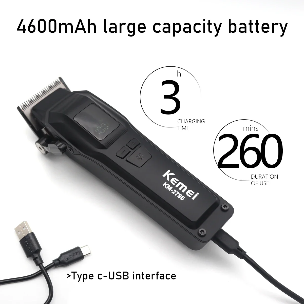 9000RPM Brushless Motor 4600mAh KM2796 Hair Clipper Professional Barber Hair Cutting Machine Electric Trimmer for Men