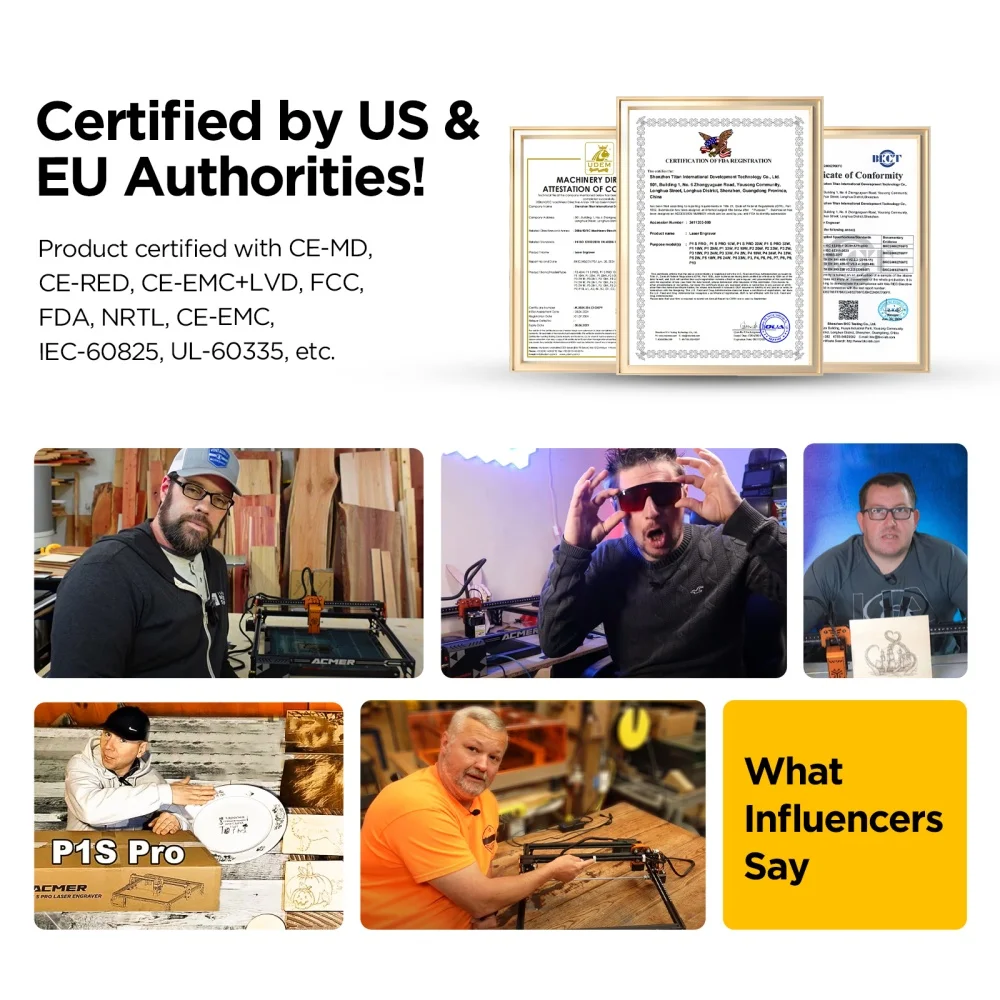 ACMER P1 S Pro 6W Laser Engraving Machine With Honeycomb Board Ultra-thin Laser Acrylic Engraver Cutting Machine 380x370mm Area