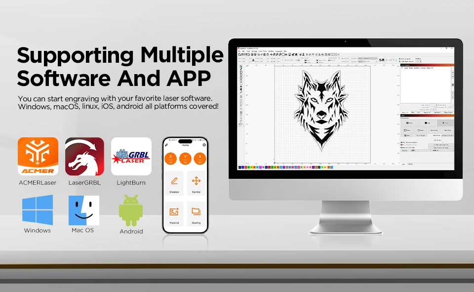 5.Wide Compatibility and Upgraded Design: Compatible with various carving software and controlled by APP, integrated design with hidden cables, upgraded compressed spot coupling technology, industrial guide rail device, and silent motor.