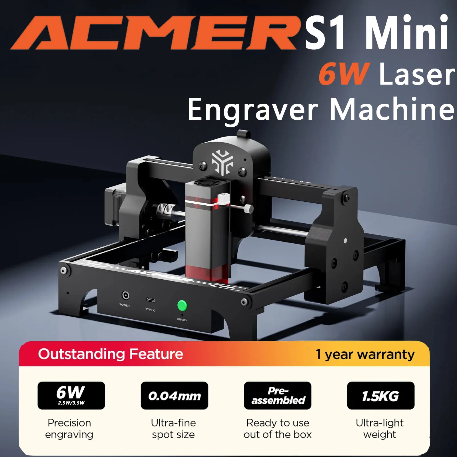 ACMER S1 6W Laser Engraver Pre-assembled Laser Engraving Printer DIY Engraver Tool Logo CNC Machine For Beginner