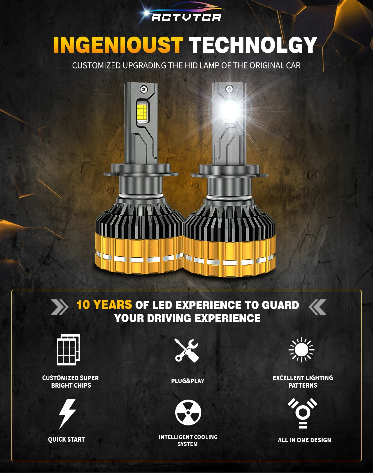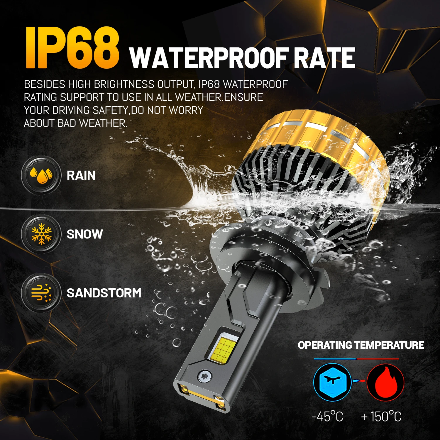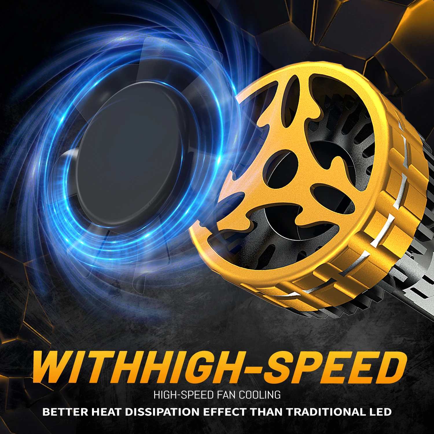 ④[Efficient heat dissipation system]:Efficient heat dissipation system: The unique hollowed-out heat sink and 12.000RPM turbofan of the full aviation aluminum alloy body provide excellent heat dissipation capability, ensuring a longer service life up to 50,000 hours, excellent waterproof and dustproof performance.