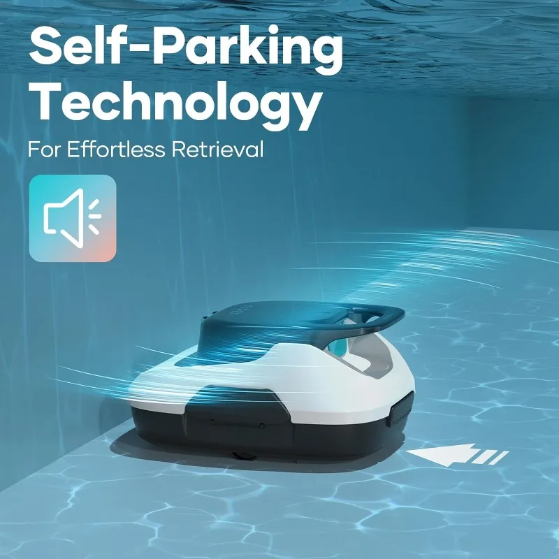 - [SMART AUTO-PARKING] The pool cleaner for above ground pool intelligently docks itself at the pool's edge when the battery is low, facilitating easy retrieval without getting wet. An intuitive audio alert system keeps you informed, enhancing the user experience.