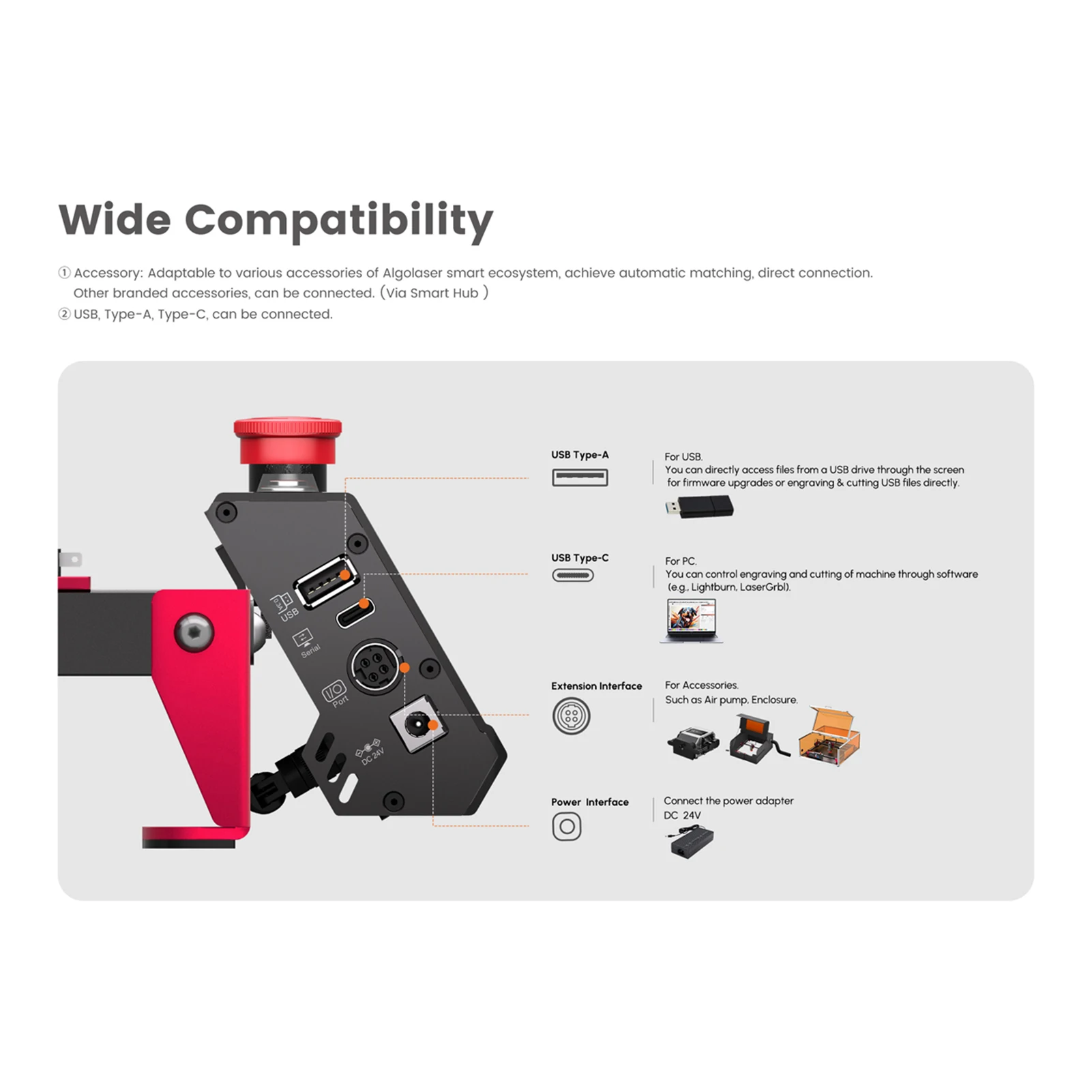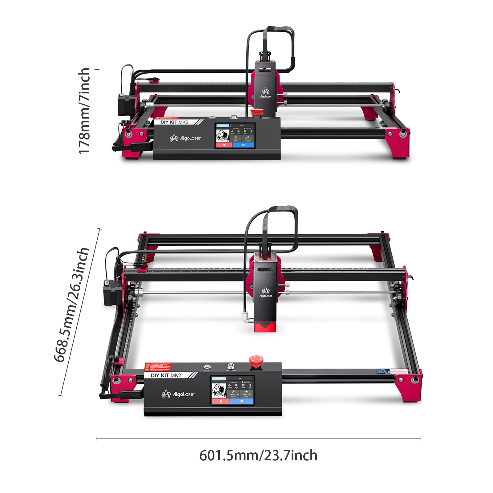 🔝 Smart Integrated Control: The AlgoOS has built-in Algo Graphics Engine, A 5M JPG image could be processed within 30 seconds, from image to engraving within 1 minute, allowing ordinary users to be free from learning new software. DIY KIT MK2 is compatible with a wide range of Algo smart accessories such as Smart Hub, Heightening Feet, Dustproof Box, Camera or Purifier (purchase separately) for better carving performance.