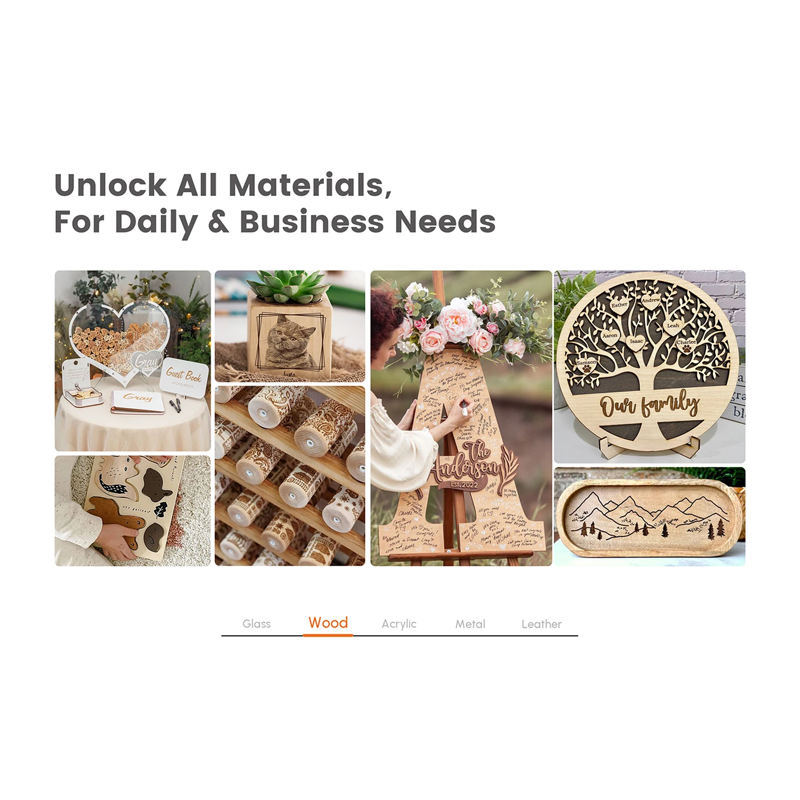 🔝 Ultrafine Laser Point & Powerful Laser Module & Faster Speed: Comes with the latest FAC laser technology for compressed laser point, 0.08*0.1mm Smaller laser spot and ultra-fine lines allow for impeccable details and cutting 4mm Birch Plywood, 5mm Basswood Plywood by one pass. Up to 12000 mm/min speed is and 400*435mm engraving area allows you to product more works at the same time.