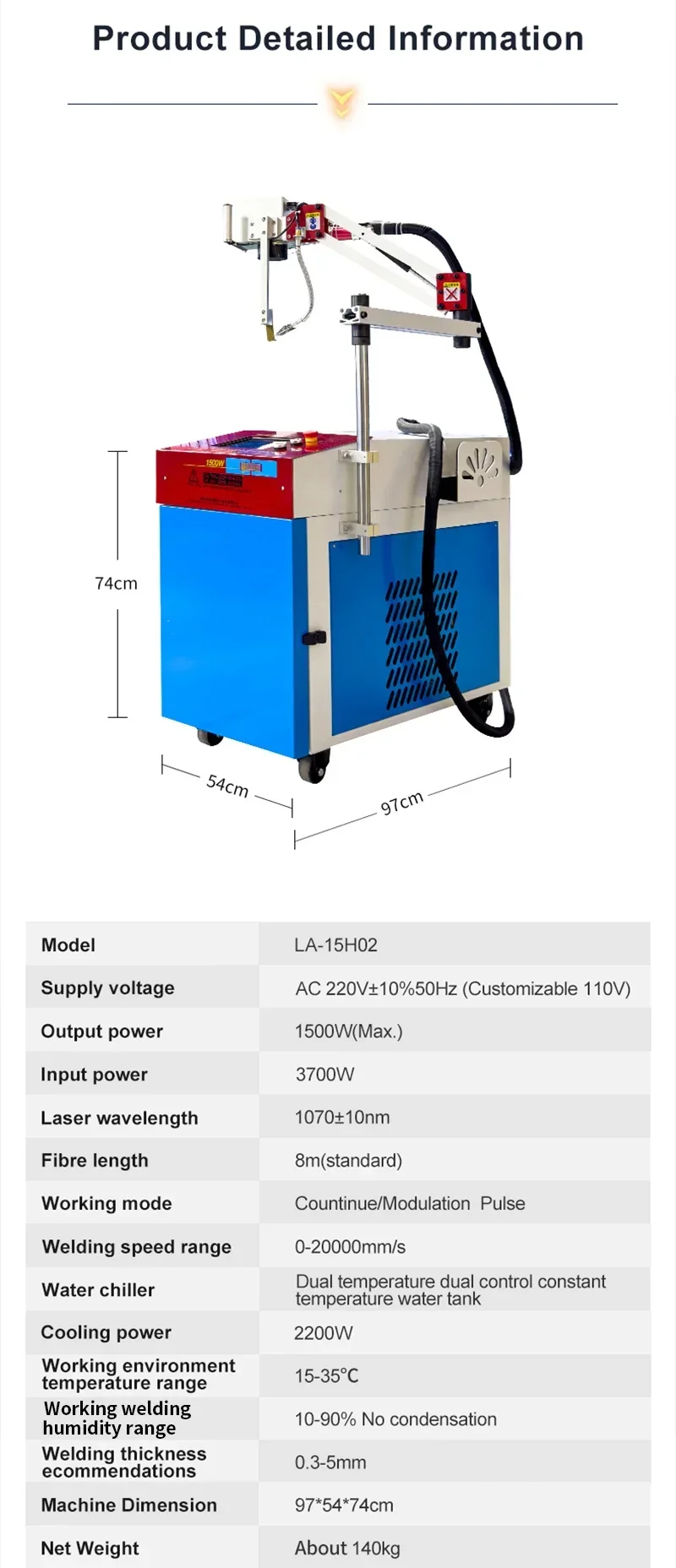 LA-15H02 Handheld Cantilever Laser Welding Machine for lithium batteries adjustable thickness spot welder equalization repairer 1500W