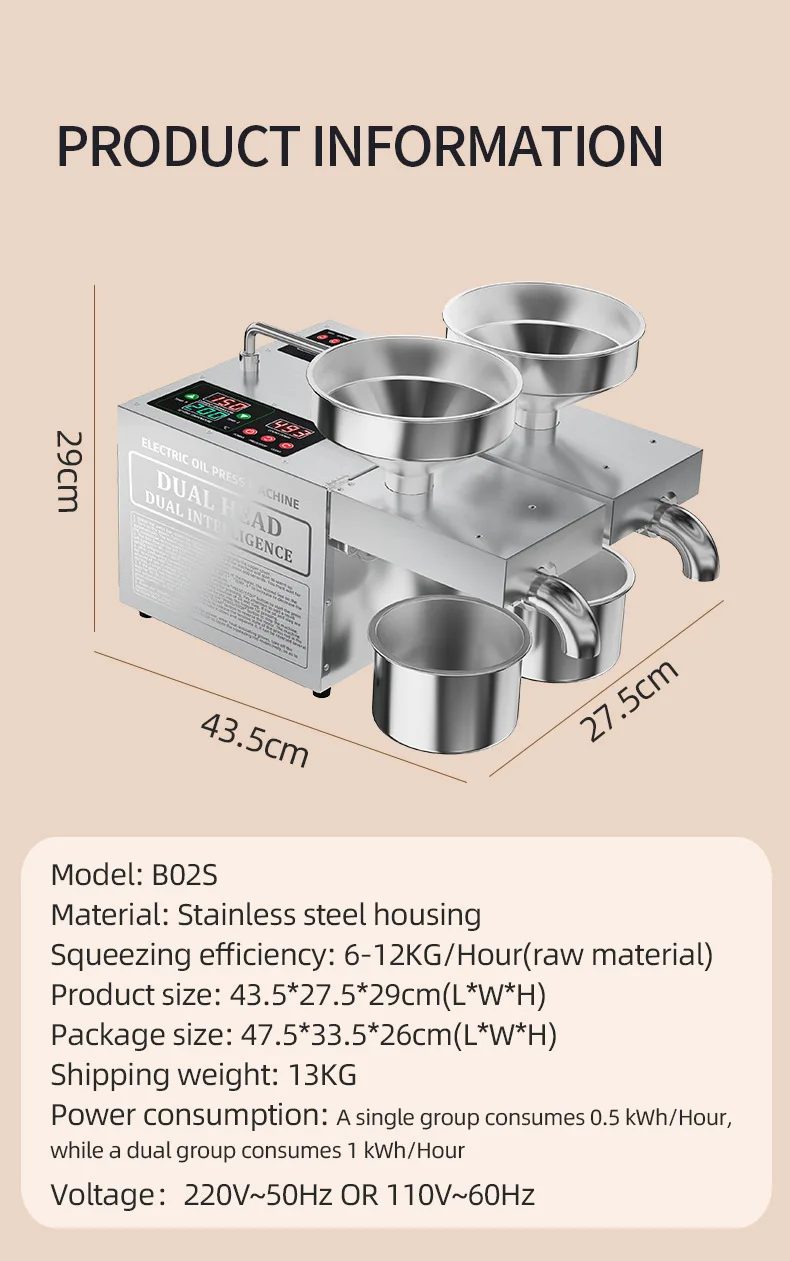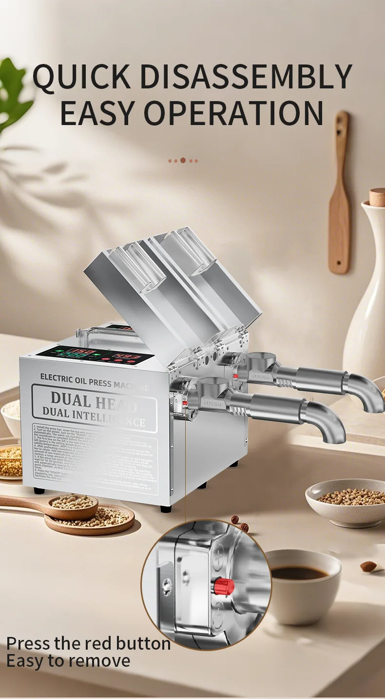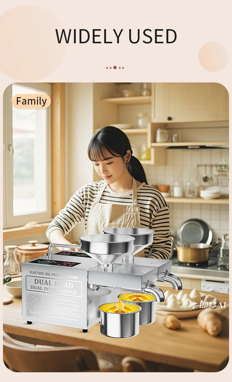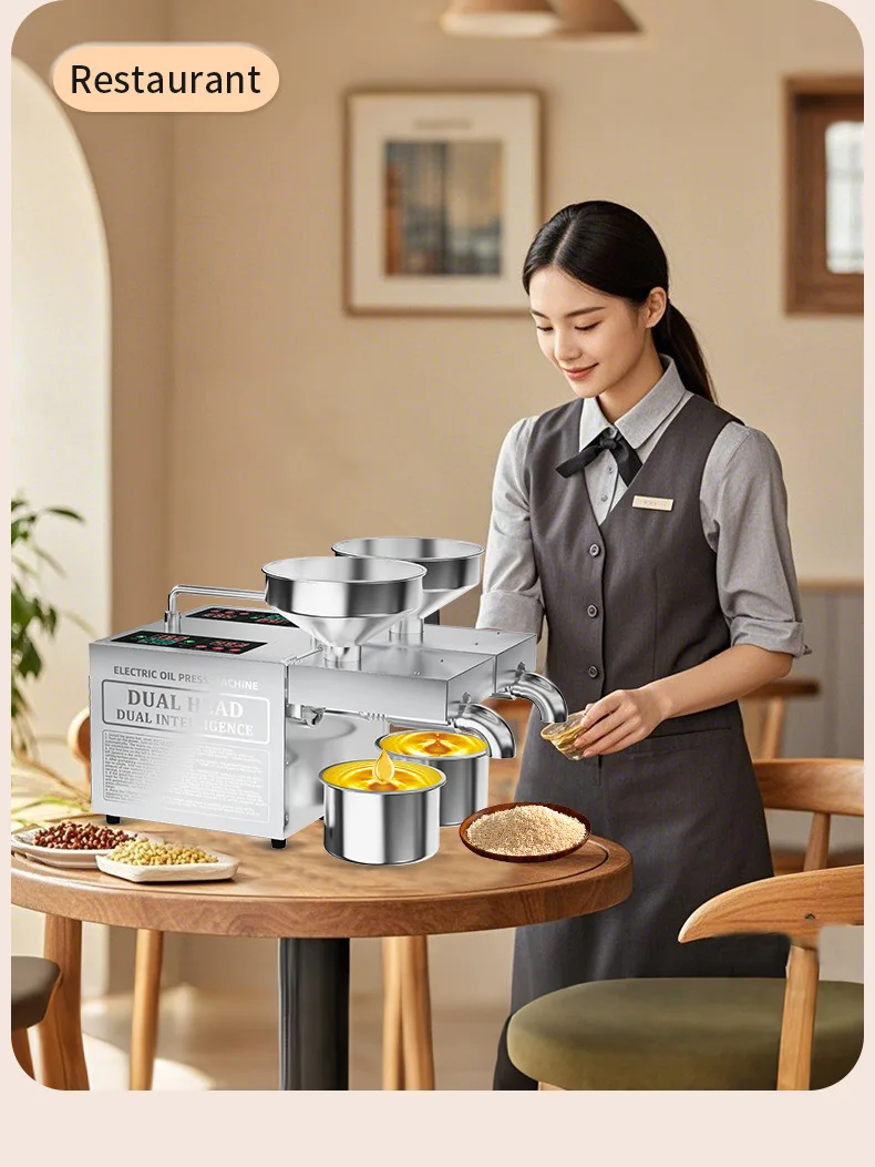 Solve the bottleneck problem of traditional single-head oil press, and it is suitable for small batch commercial production.
