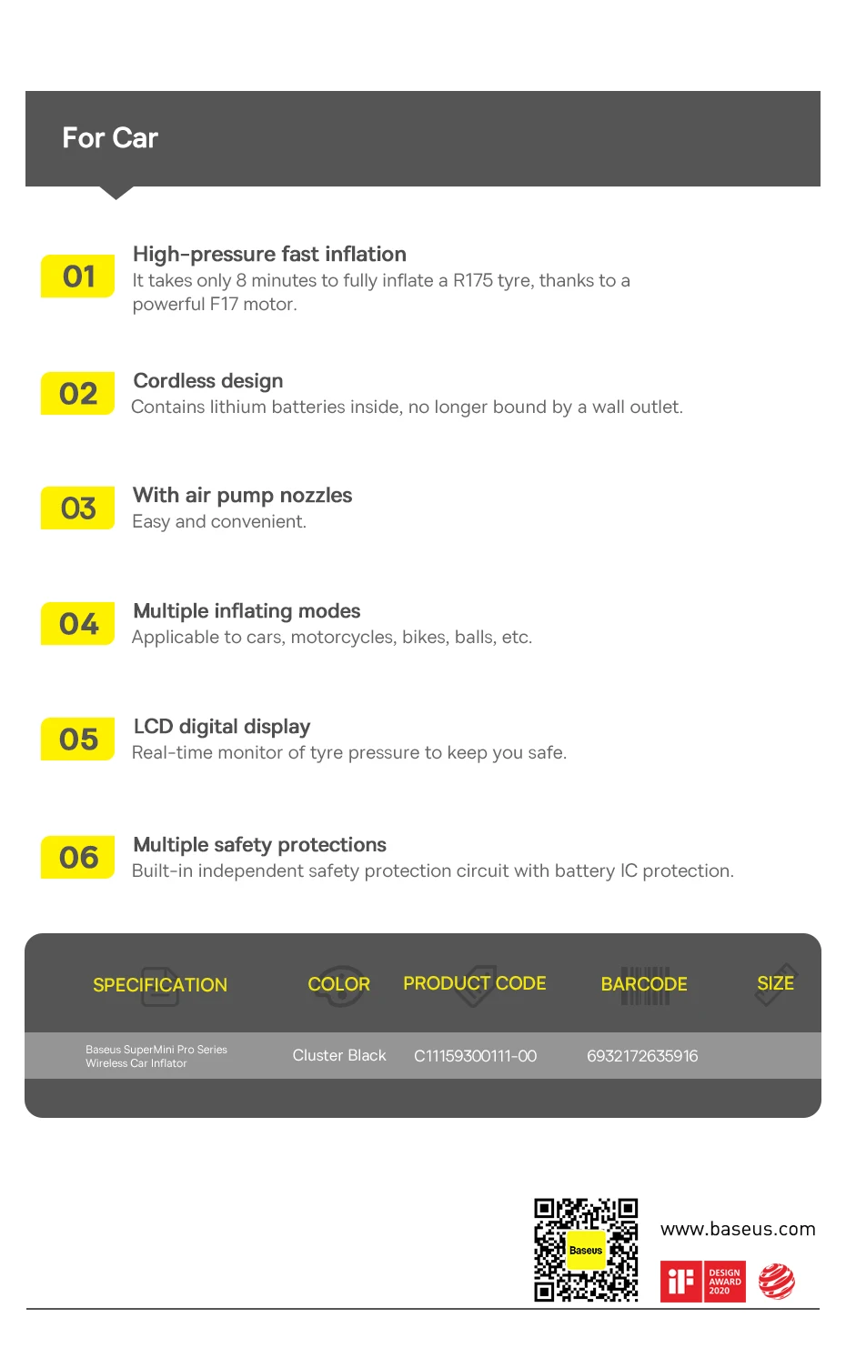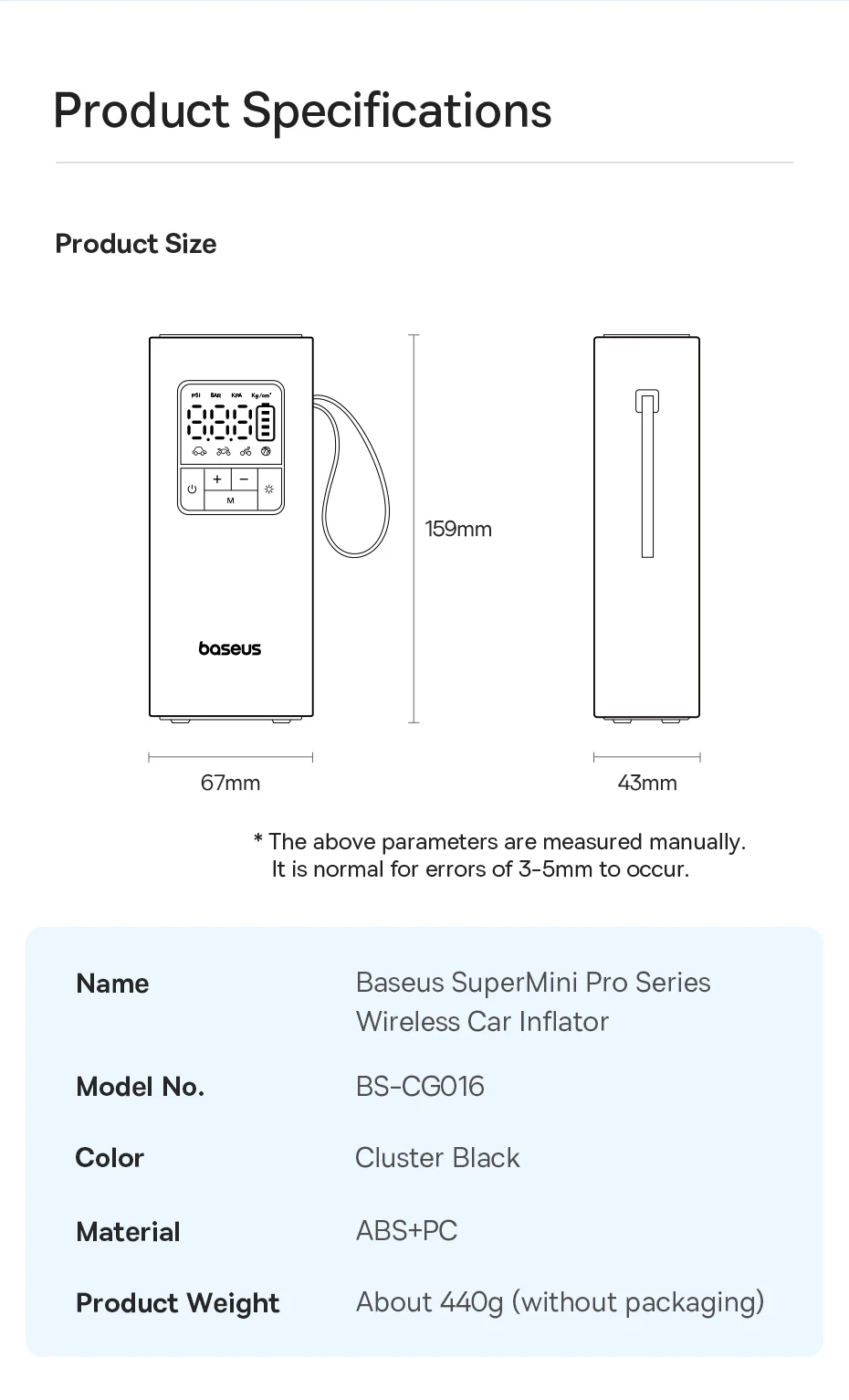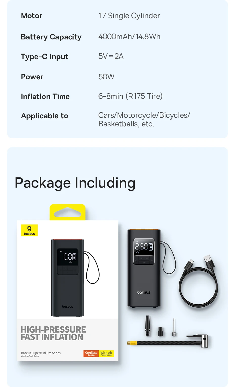 Product Name: Baseus Super Mini Pro Series Wireless Car Inflator