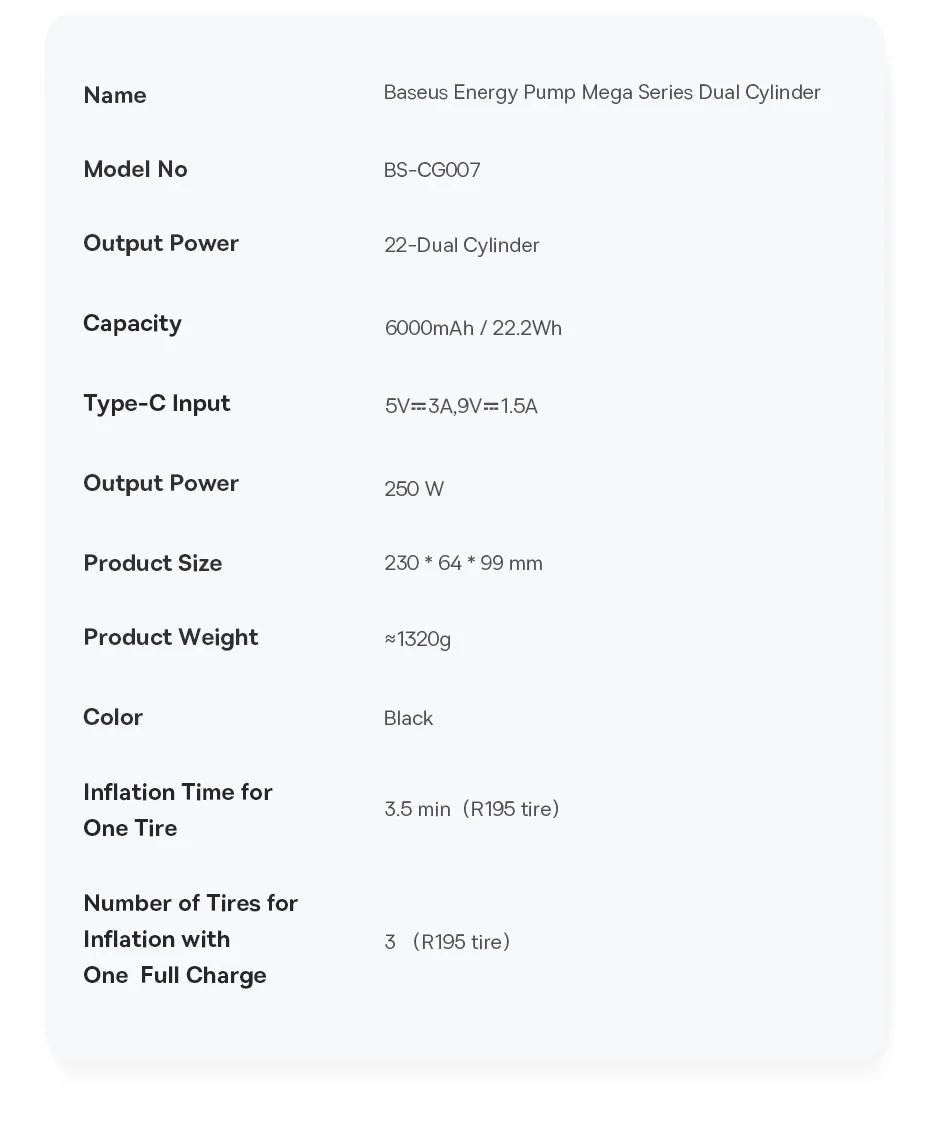 Product Name: Baseus Super Energy Wireless Car Air Compressor