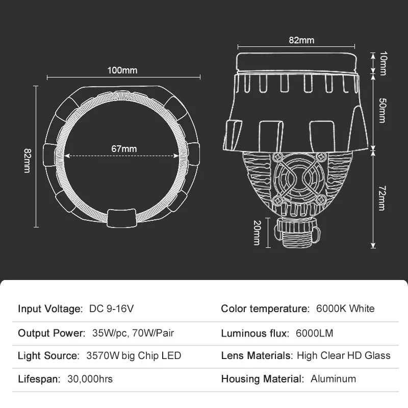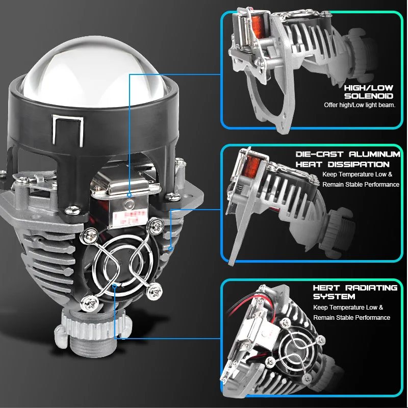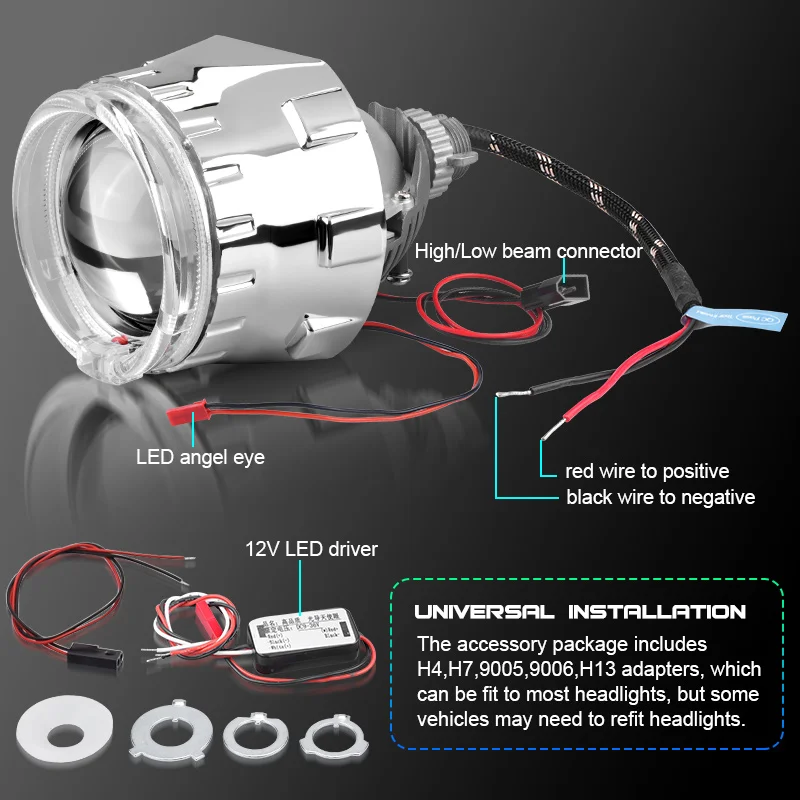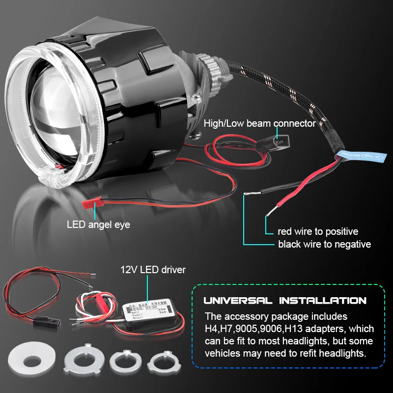 Easy Installation: With threaded-shaft, allows the projector to be locked on with their included hardware, it can be mounted in H4/H7/9005/9006 reflectors with none or minimal modifications.