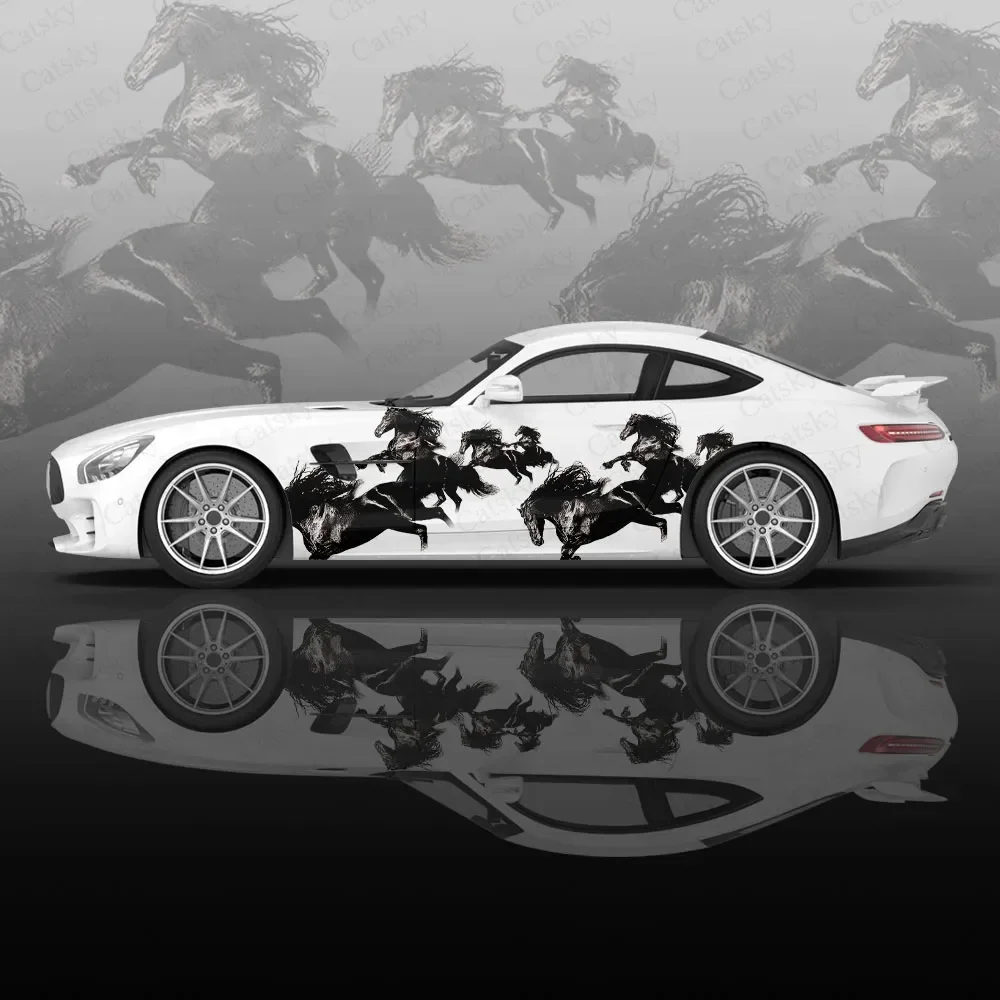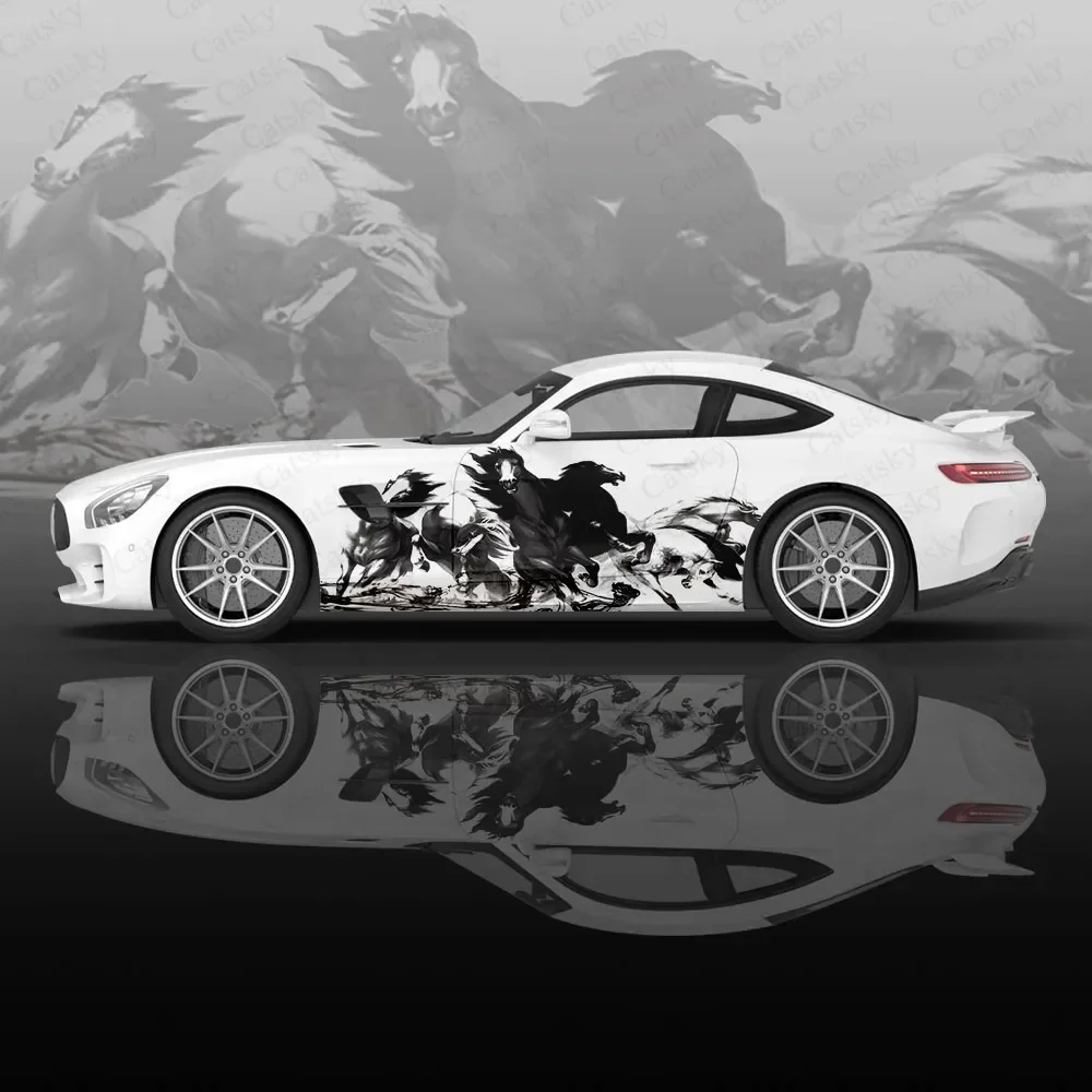 Black Art Horse Car Hood Bonnet Vinyl Decals Protect Door Side Skirt Sticker Vinyl Wrap Body Decoration Stripes Racing Sticker