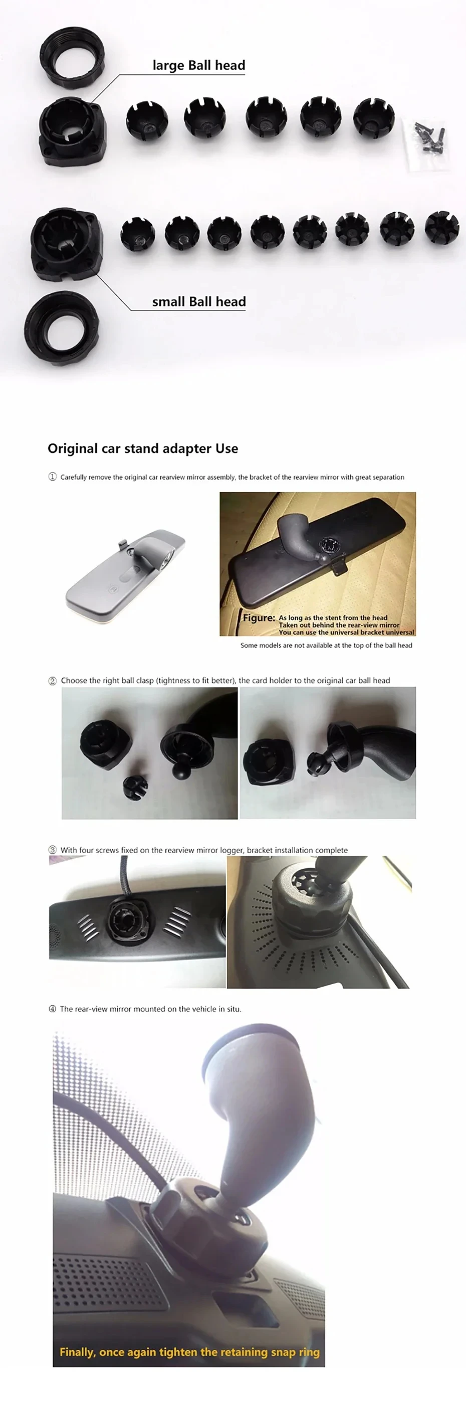 We ship universal ball mounts by default. Just insert your original car mirror mount into the ball mount.
