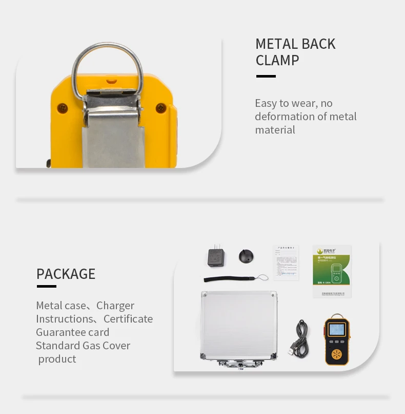 3.3.7v rechargeable lithium battery, battery capacity 1500MA, charging time is less than five hours, continuous work for more than ten hours (gas detection is not less than 7 hours)