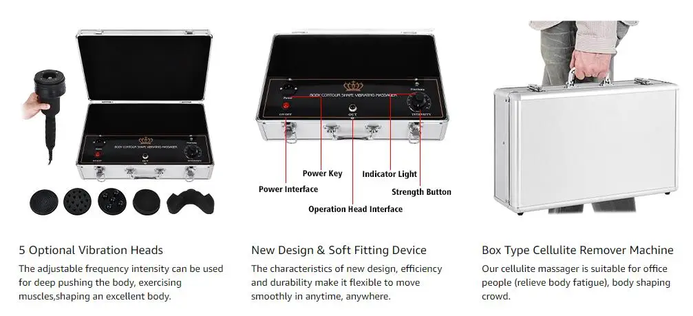 This equipment is based on the principle of physical therapy vibration. The vibration energy emitted by various shaped probes can dissolve fat layers and accelerate blood circulation to achieve body slimming effect. At the same time, it can effectively relieve muscles tension and fatigue, and remove puffiness.