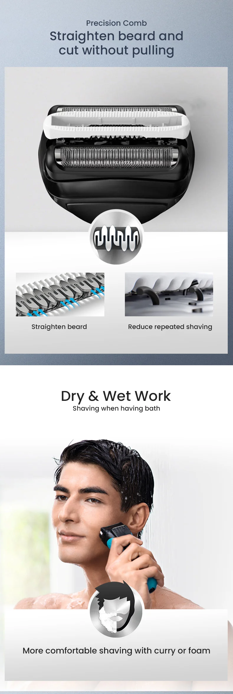 2. Dry & wet use, whole body waterproof & washable in water, can shave when having bath