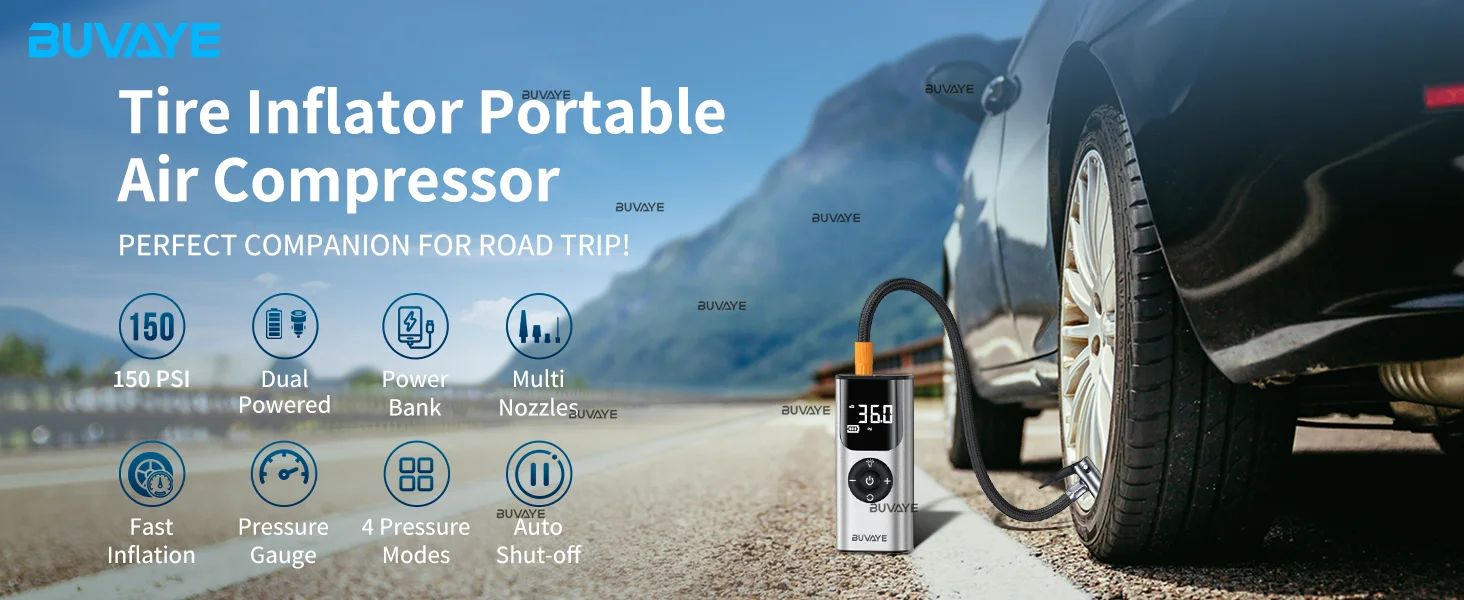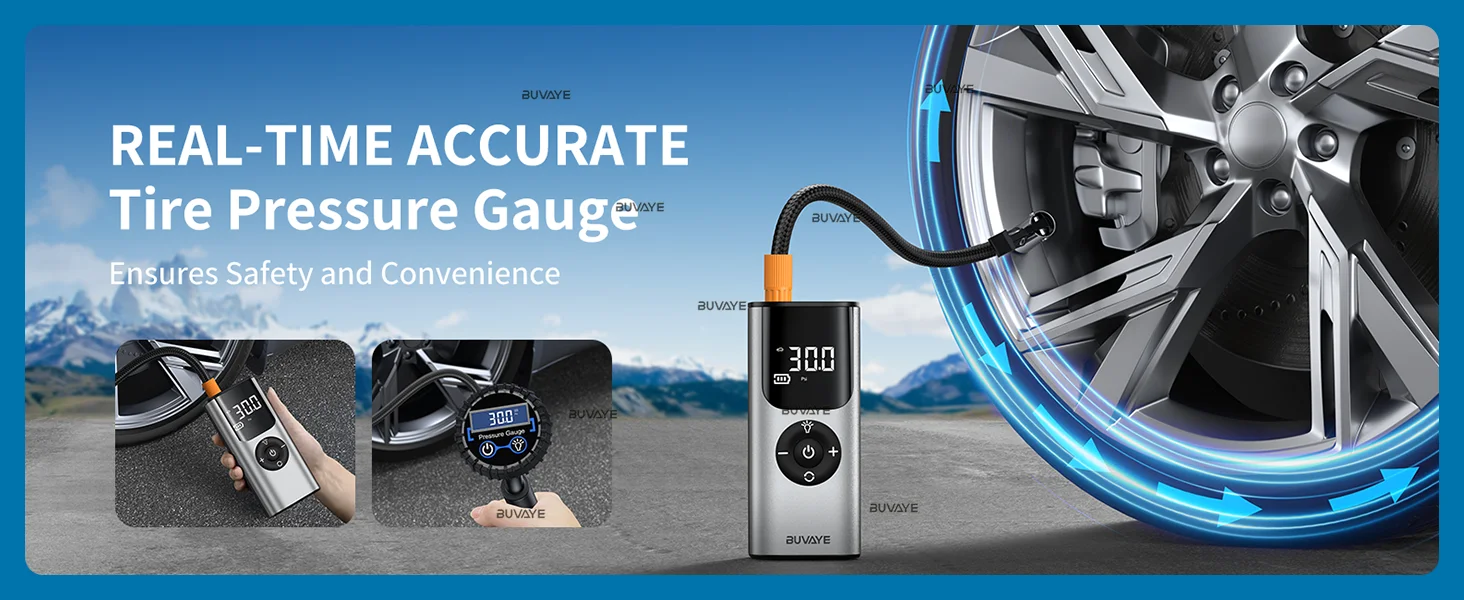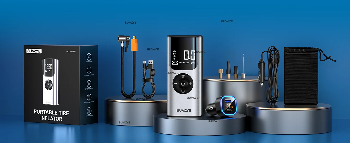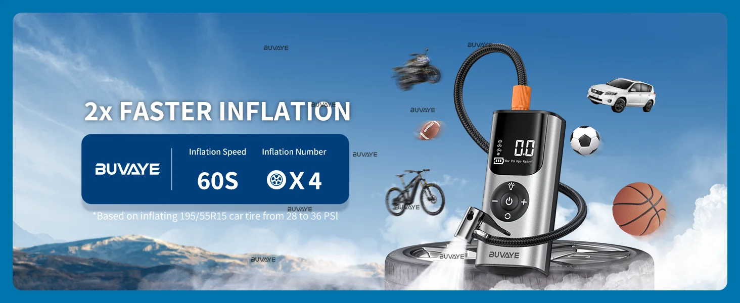 BUVAYE Car Inflator Tire Pump Portable Car Air Compressor for Motorcycles Bicycle Boat Tyre Inflator Digital Auto Inflatable