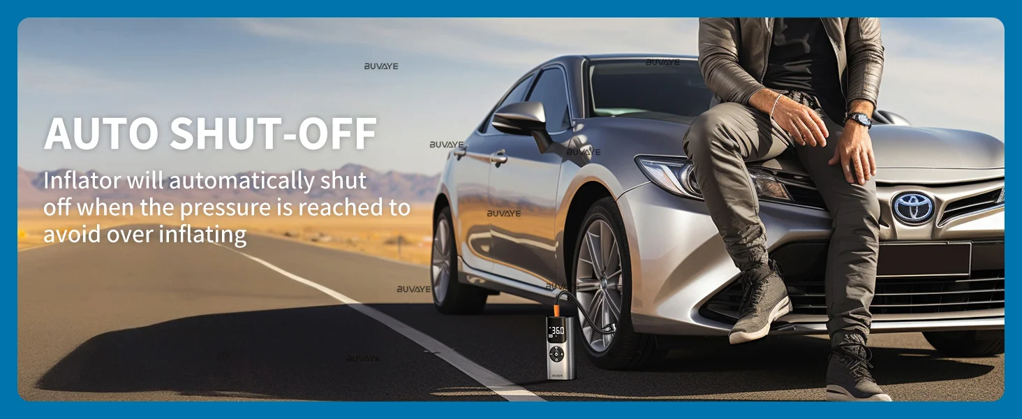 The large LED display shows real-time pressure values and preset values, making it easy to read and observe tire pressure status. Maximum pressure is 150 PSI and auto-stop gives you smart inflation. No need to worry about over-inflating your tires.