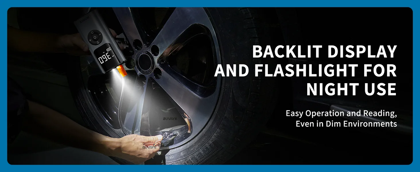 The electric air pump comes with 2 LED light modes: flashlight, flashing light. Useful in roadside emergencies and at night. Never worry about inflating in the dark again!