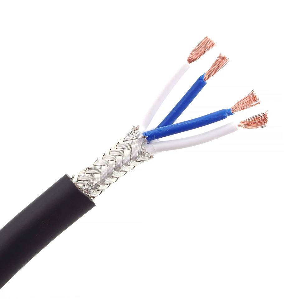 ------The wire structure is 4 core double twisted structure. The electromagnetic shielding line with shielded special cable. Compared with the 2 core shielded line, the stranded wire structure has a strong anti noise feature. Compared with the two core audio line, this cable has a very good anti noise effect and can shield 90% of the noise.