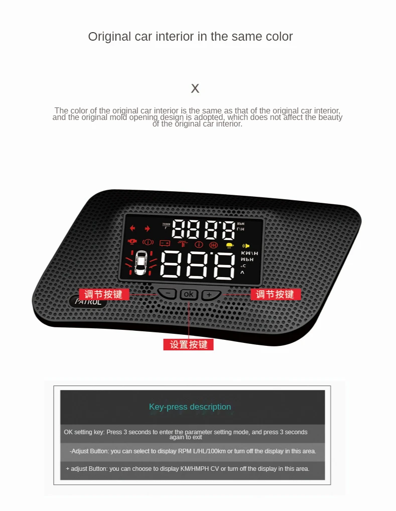 lt allows us to keep track of various data on the vehicle dashboard at any time,without looking down at it. Real-time control, avoiding traffic accidents causedby distraction while driving.